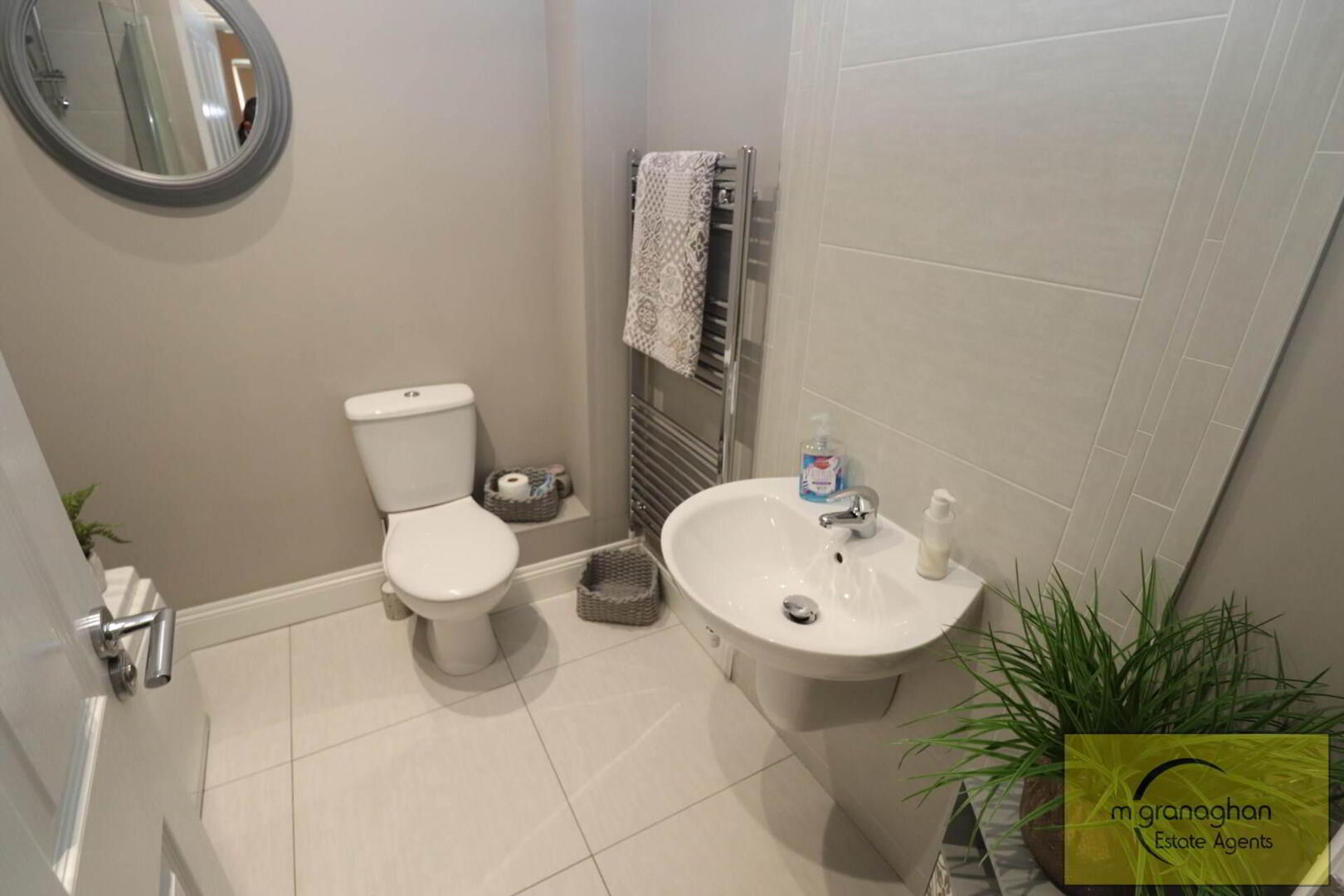 As you enter the property, you`ll be greeted by a welcoming entrance hall that leads you to the lounge. This room is perfect for relaxing and unwinding after a long day, and features plenty of natural light creating a bright and airy atmosphere. The modern kitchen is fully equipped with high quality appliances and plenty of storage space making meal preparation a breeze. There is also a modern downstairs W/C, providing a fresh and stylish place to freshen up.