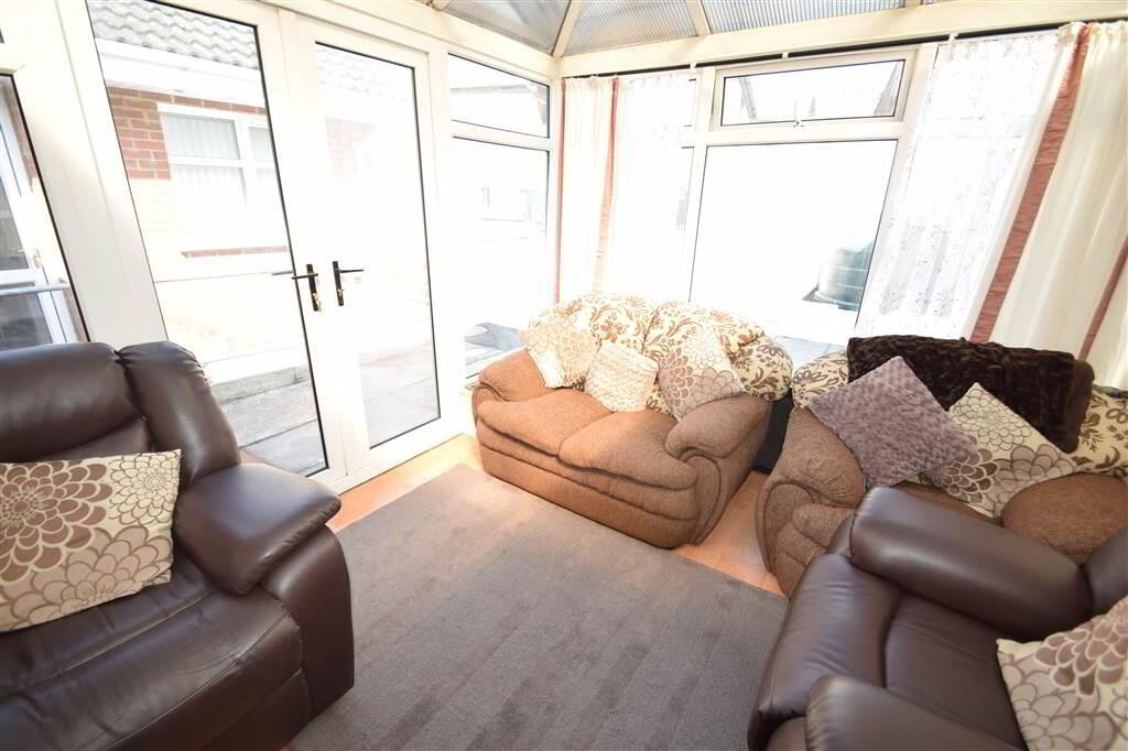 Laminate flooring, feature fire place, patio doors to rear - CONSERVATORY: