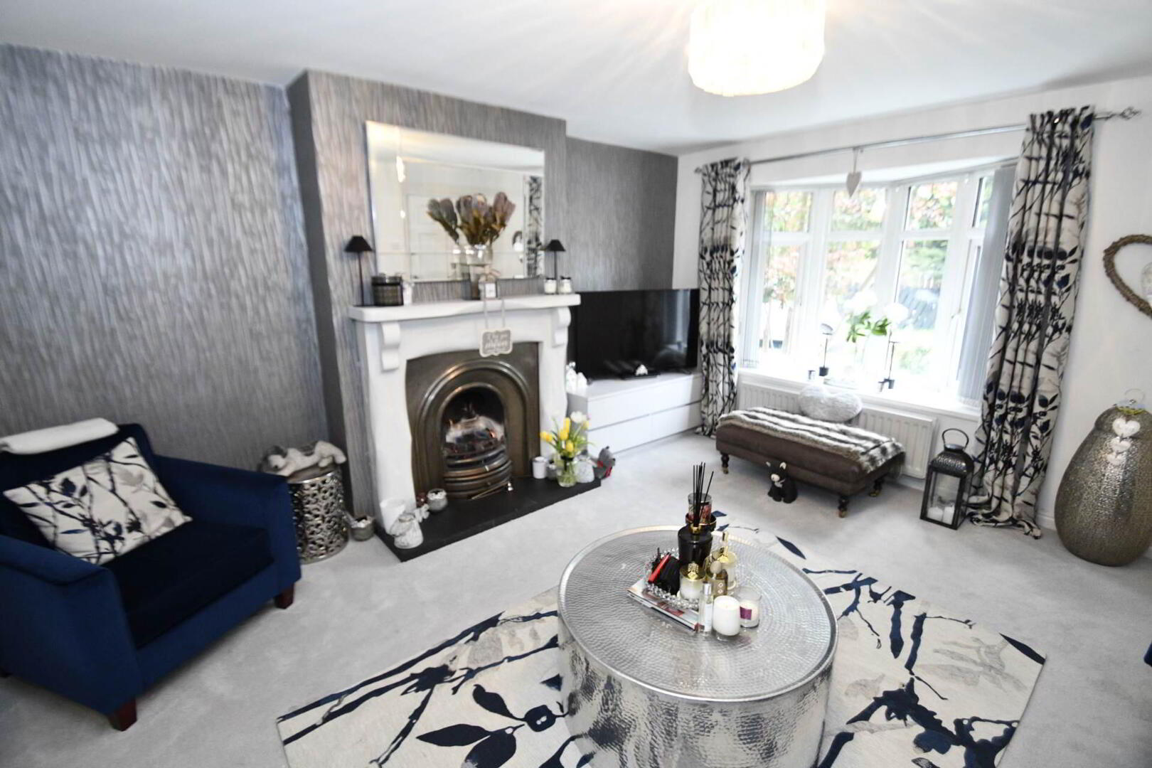 Bay window, feature fire place, under stairs storage, leads to kitchen
