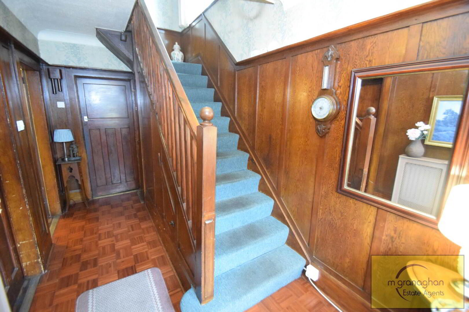 Upon entering the property, you are greeted by two bright and spacious family rooms on the ground floor, providing ample space for relaxation and entertainment. The kitchen, which leads onto a dining area, offers a perfect setting for family meals and gatherings, with views overlooking the impressive gardens to the rear.