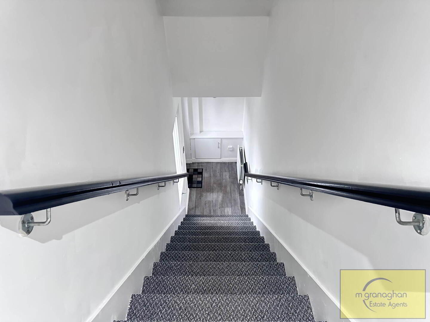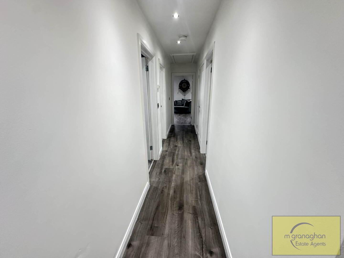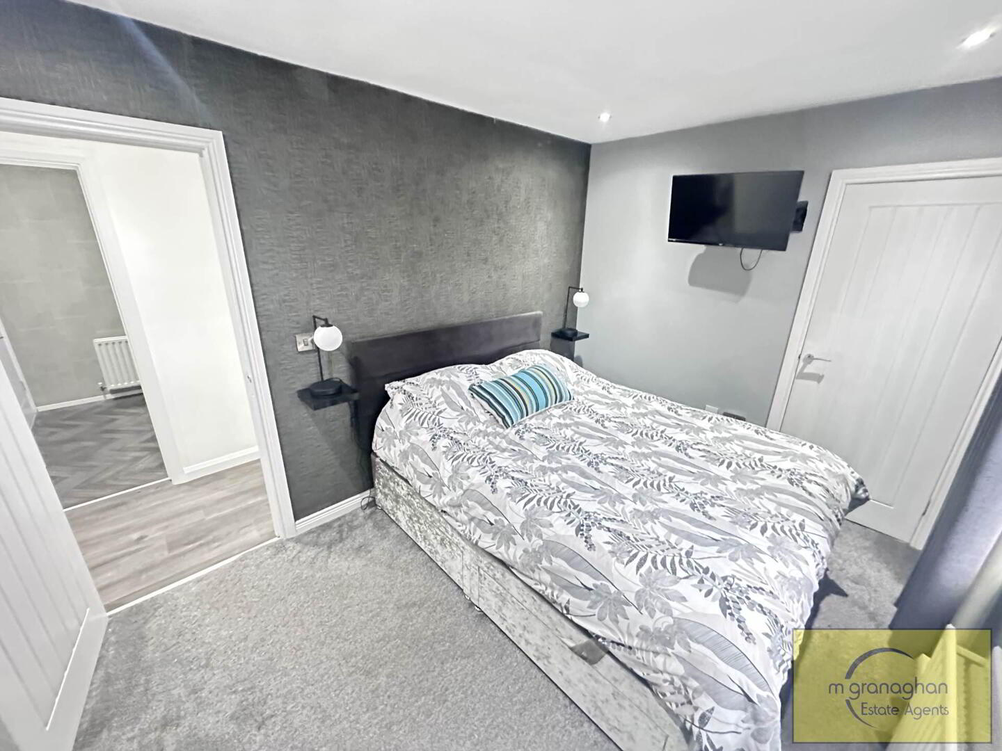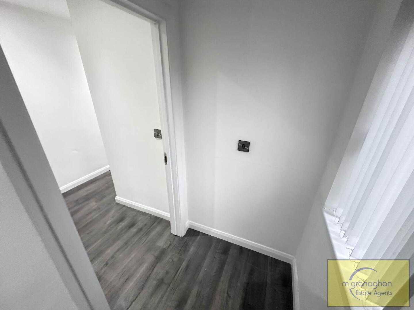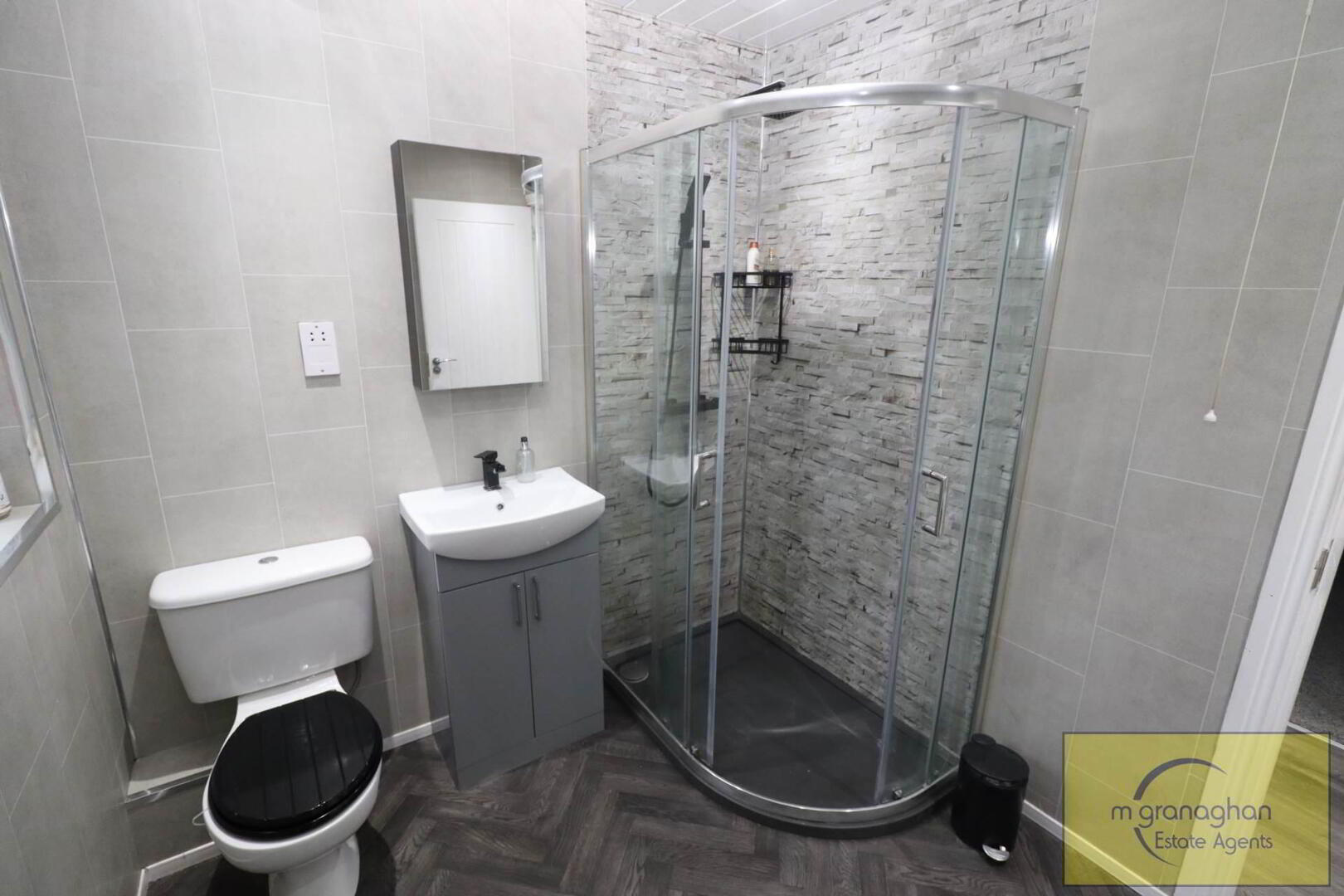 The apartment comprises two good-sized bedrooms, both benefiting from ample natural light and neutral décor. The sleek, modern bathroom features a fitted shower cubicle, adding a contemporary touch to the accommodation.