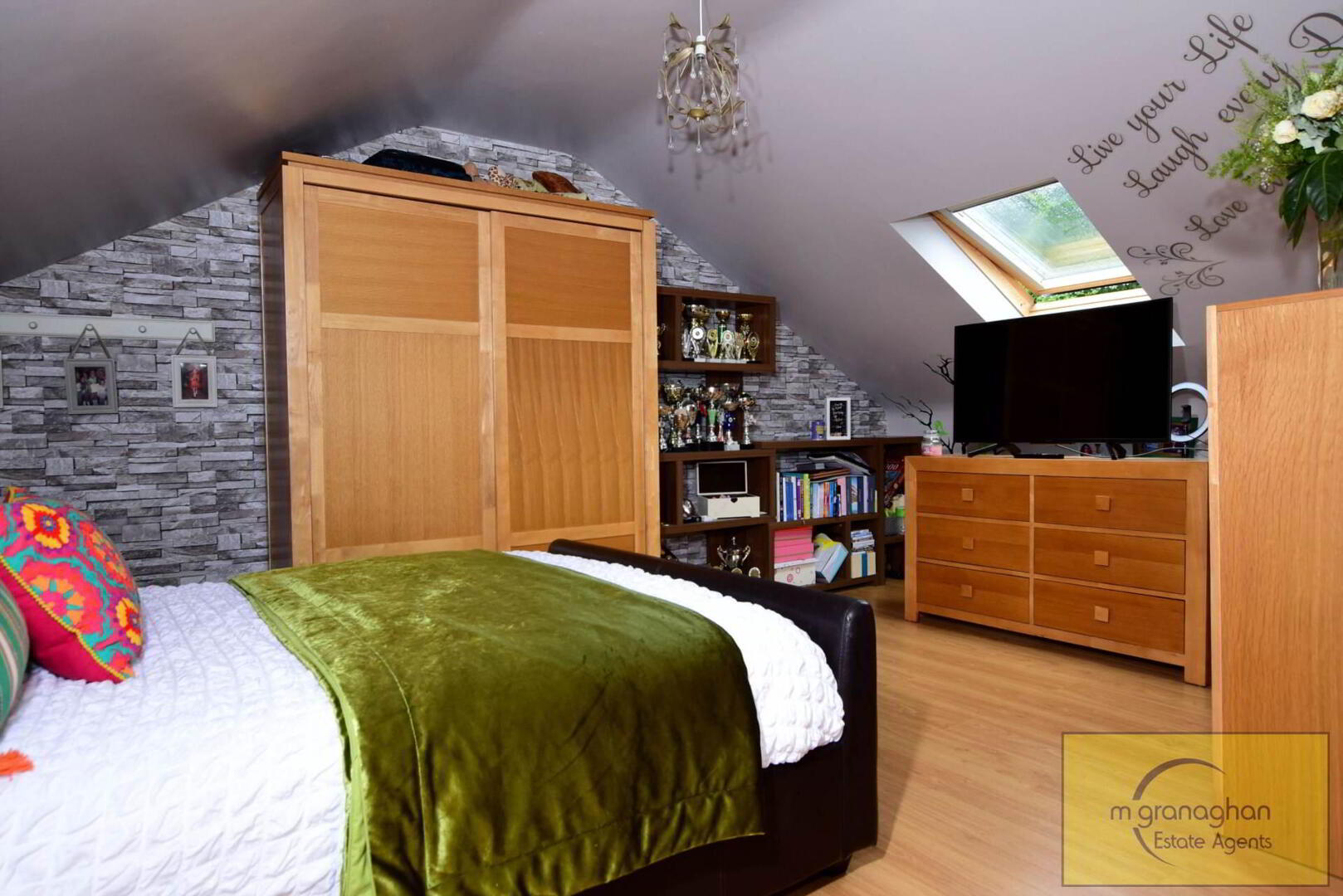 Laminate flooring. Double panelled radiator. Eaves storage. Velux window.