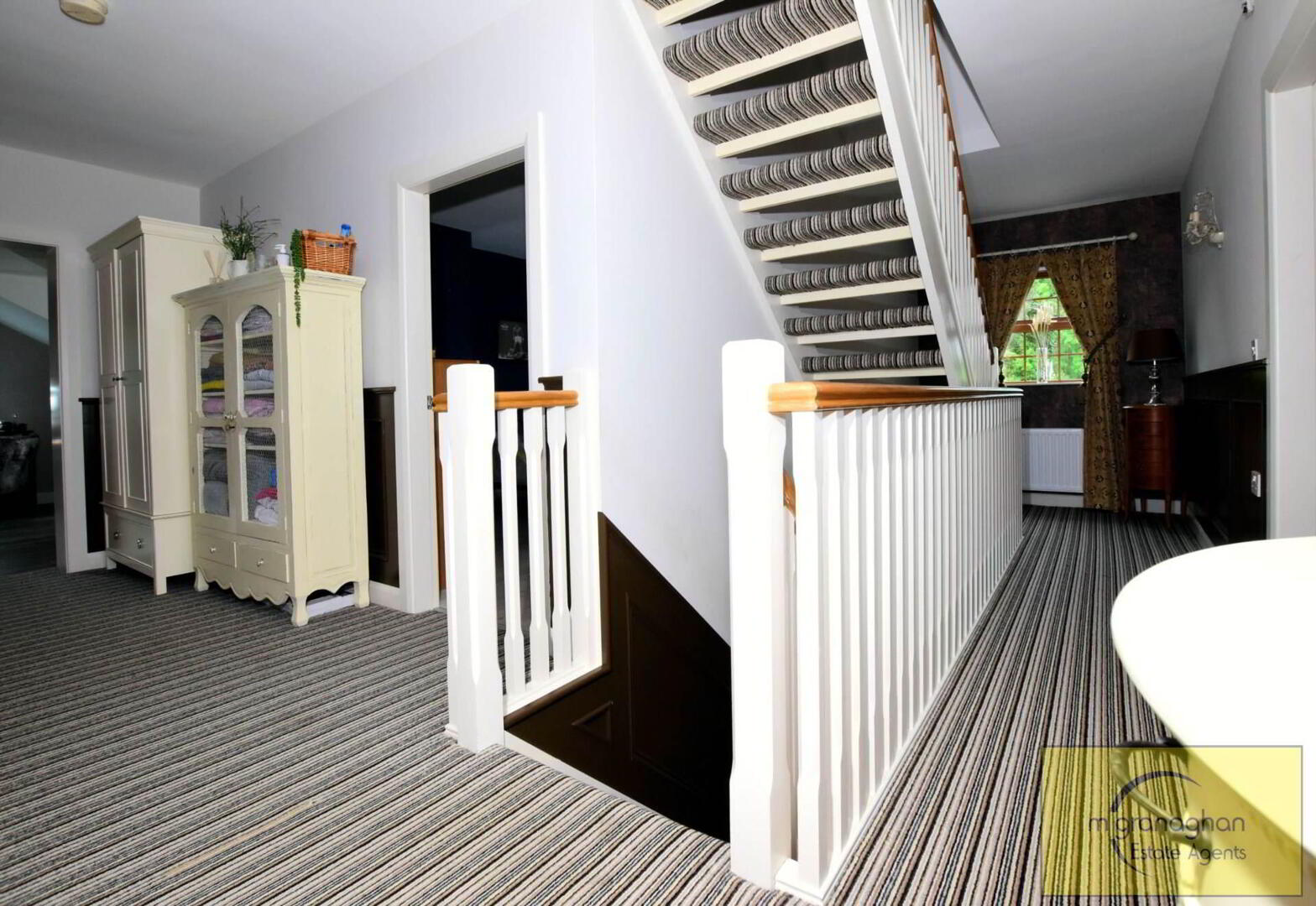 Spacious landing. Part panelled walls. Hotpress. 2 double panelled radiators.