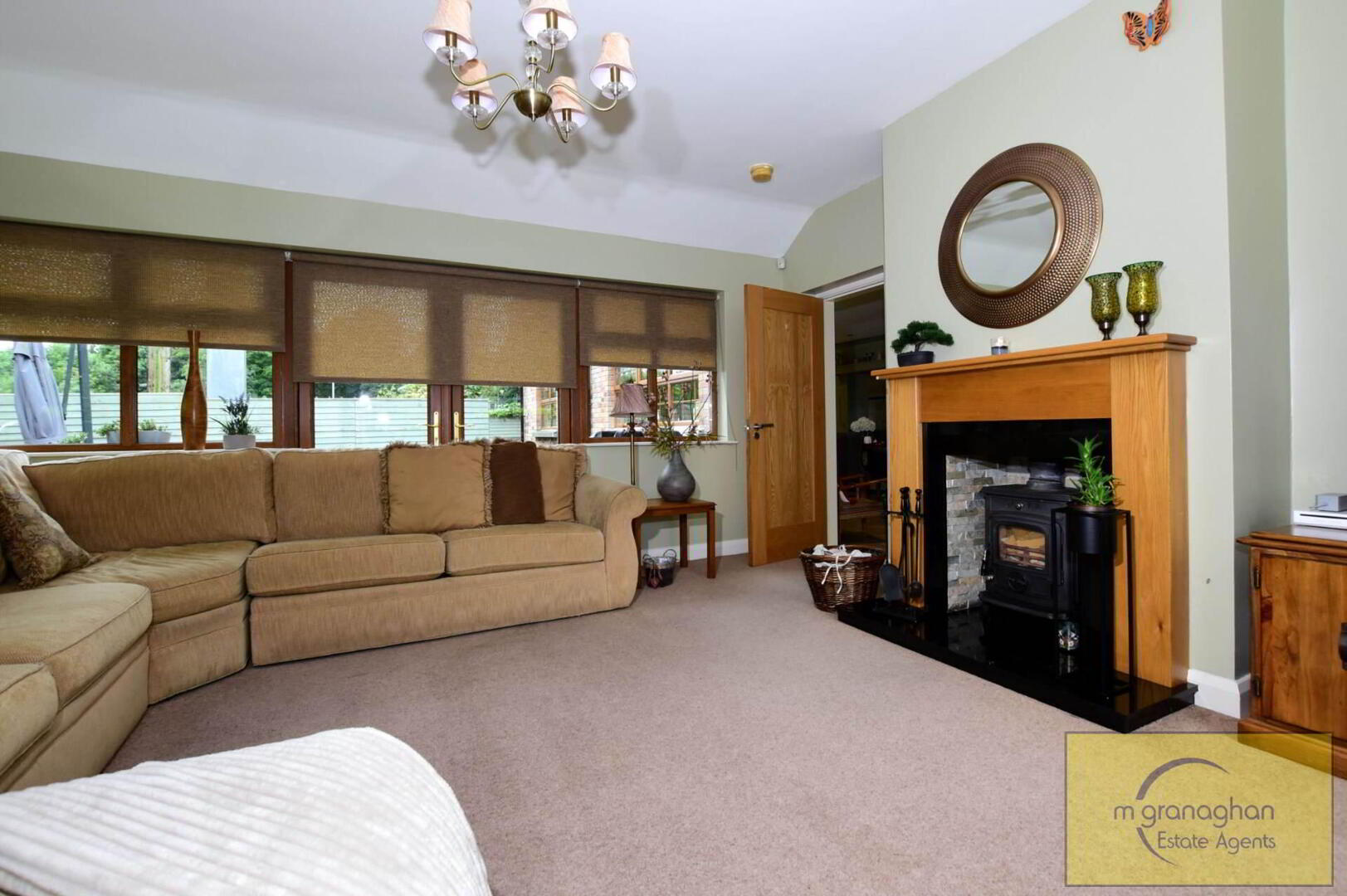 The ground floor briefly comprises a central reception hall, a large lounge with feature fireplace, dining room, home office or playroom, luxury kitchen and dining area, large sunroom with log burning stove, utility room and ground floor WC.