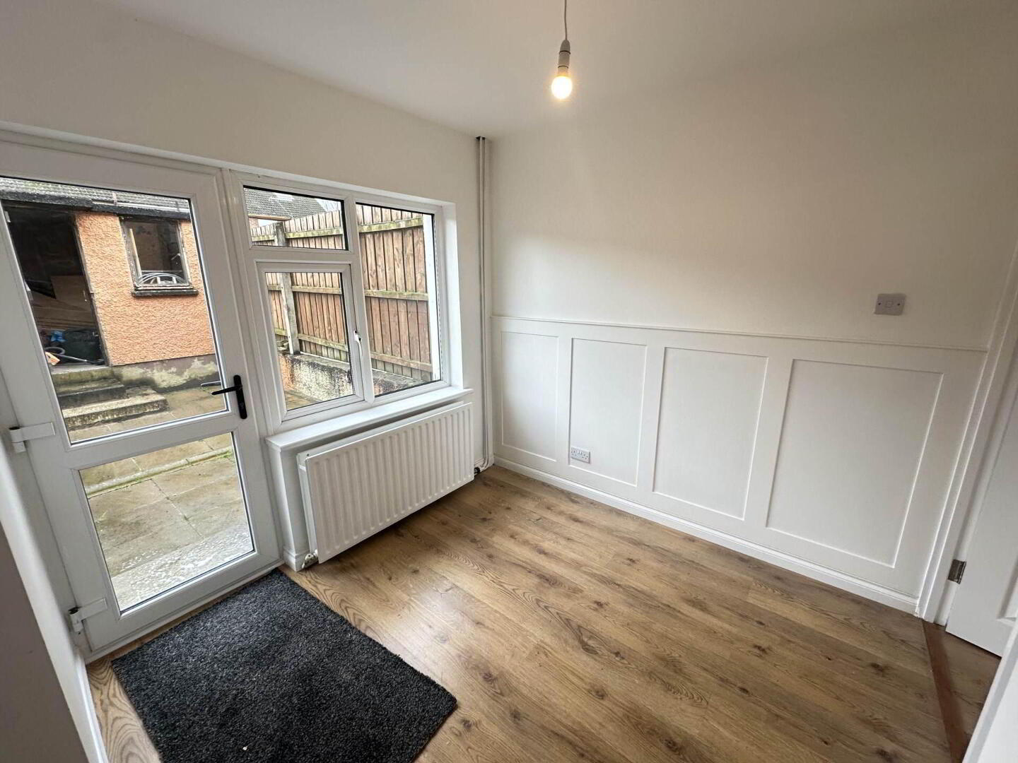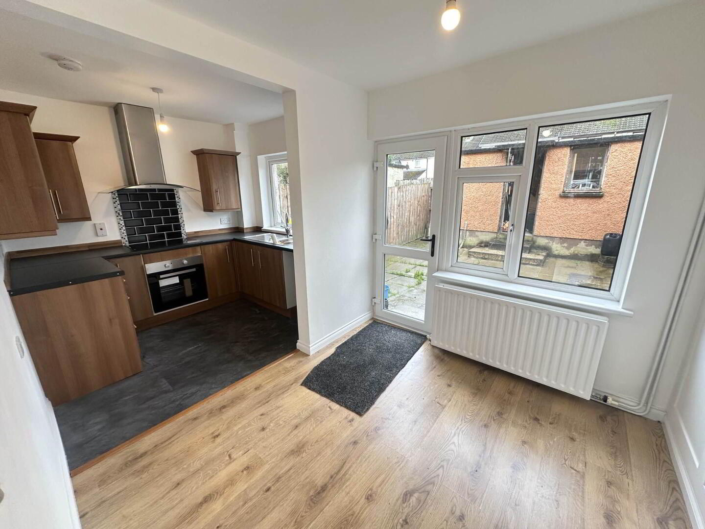 Laminate flooring, access to rear patio area