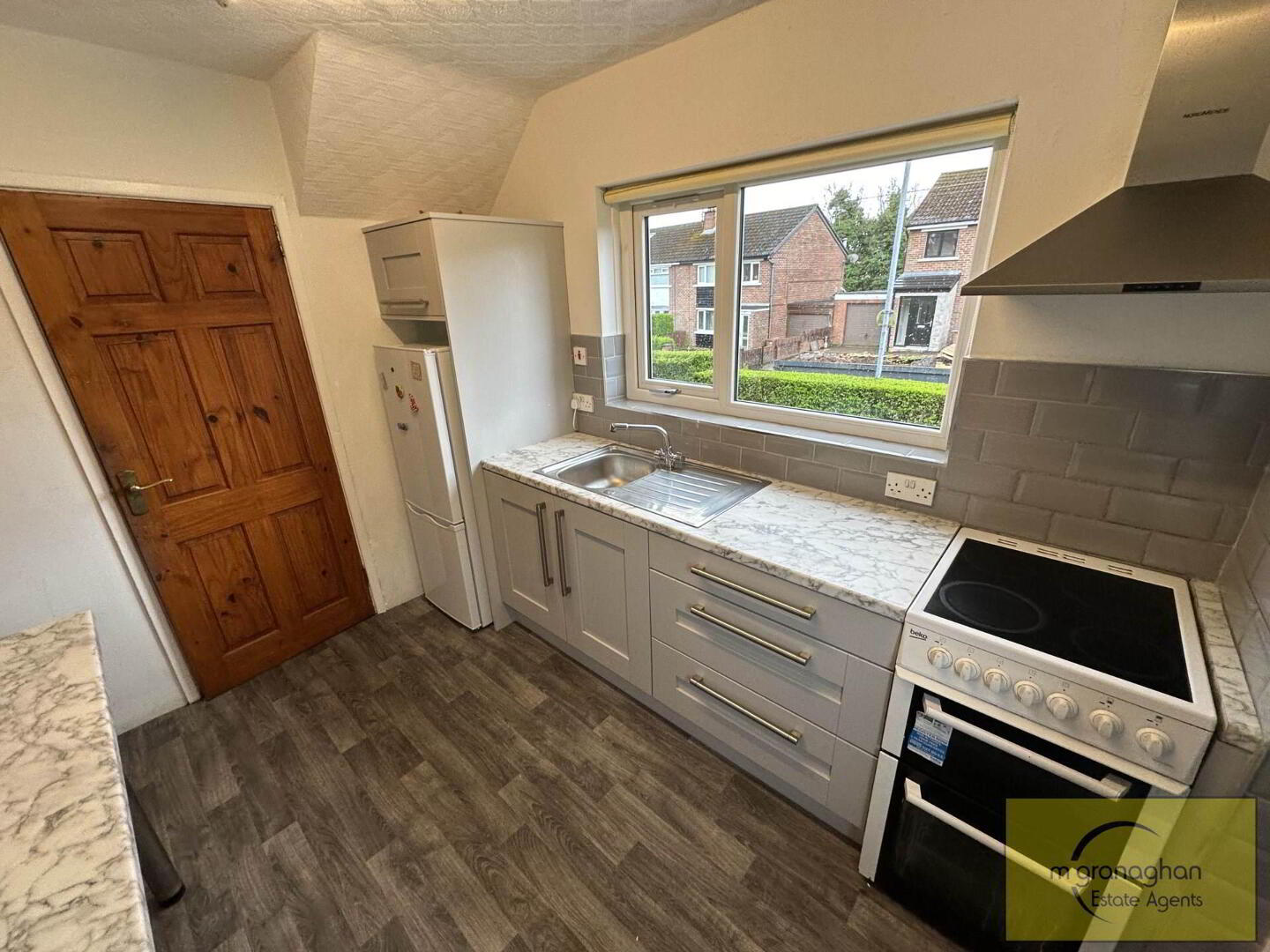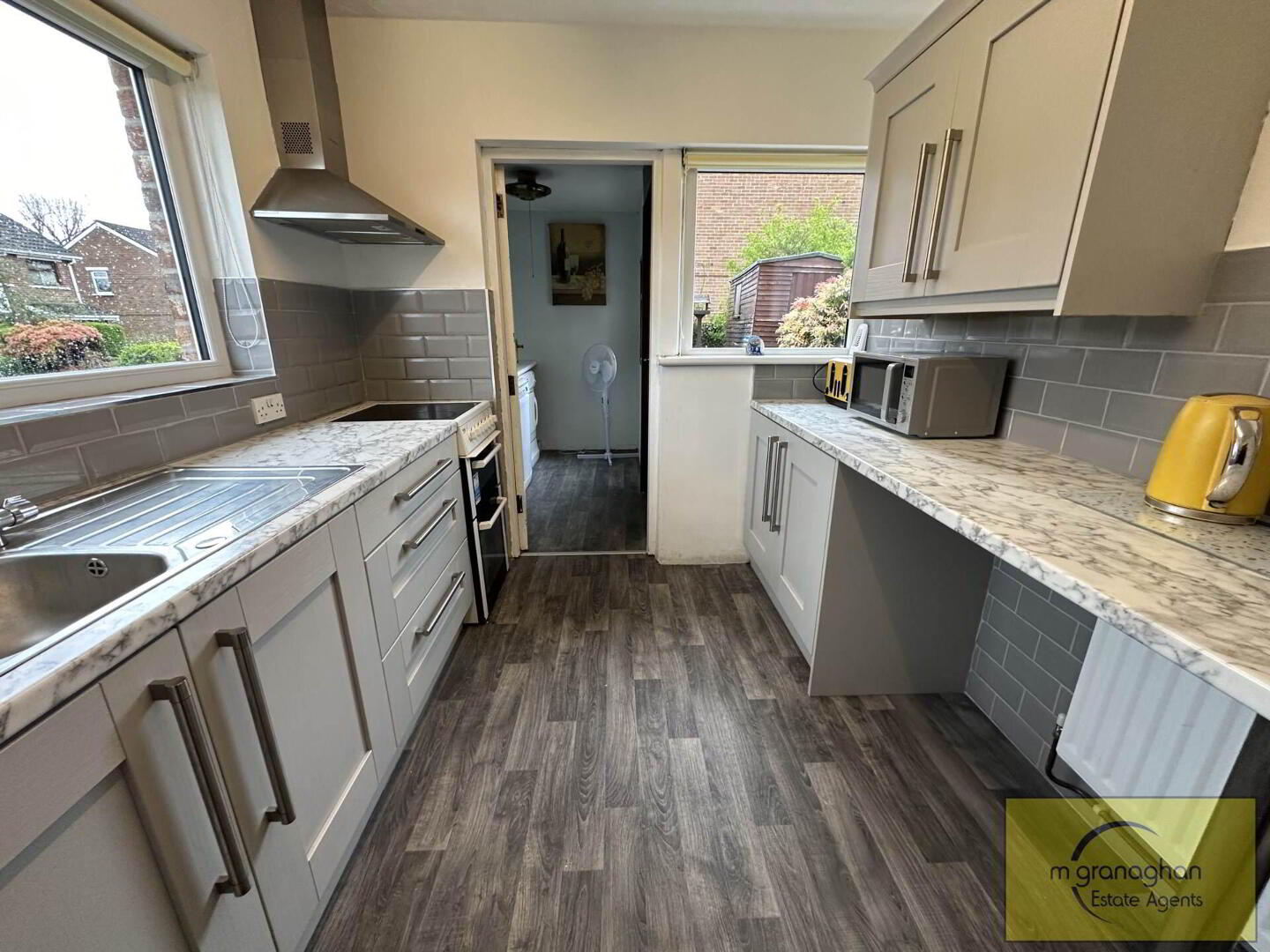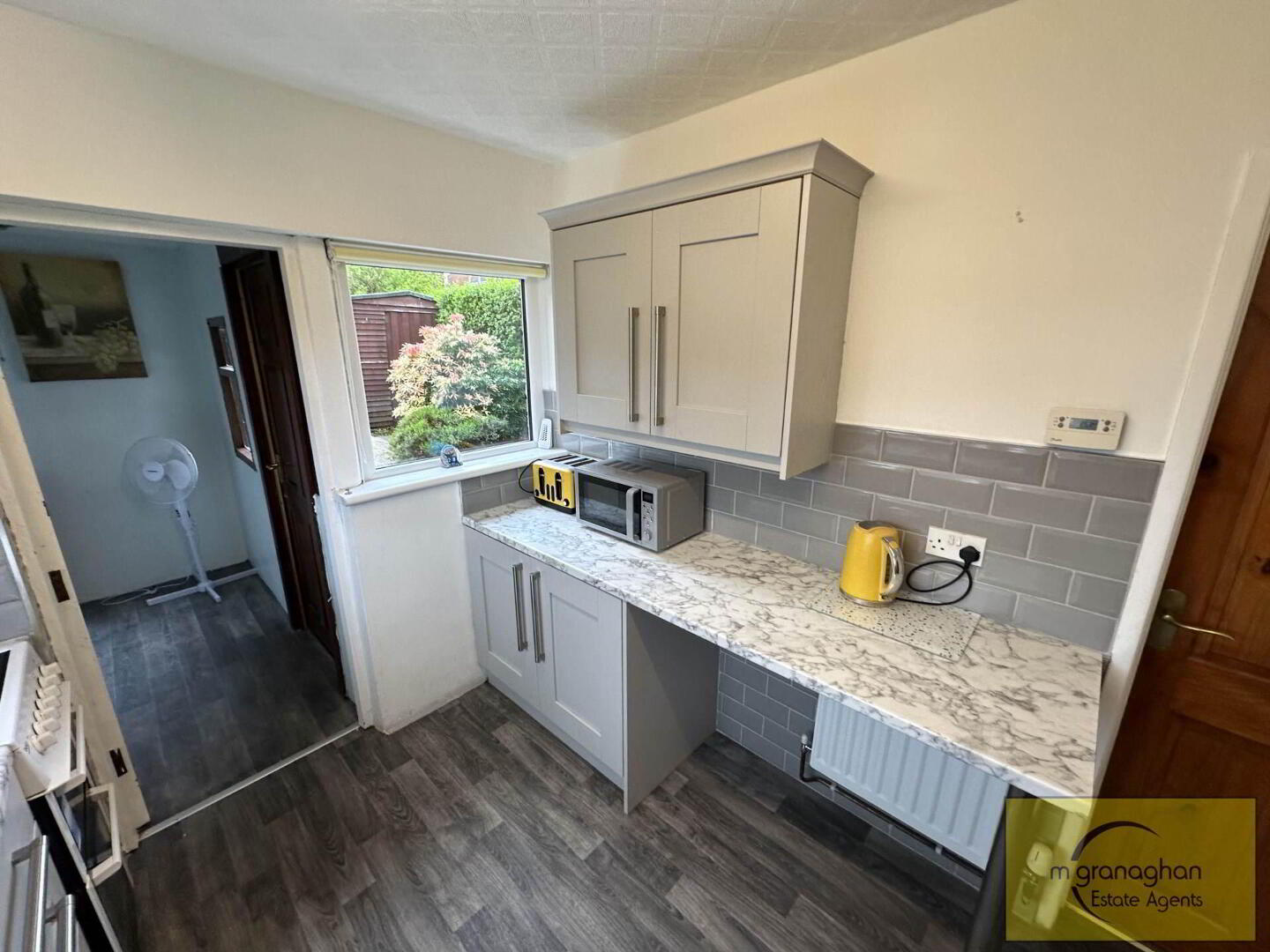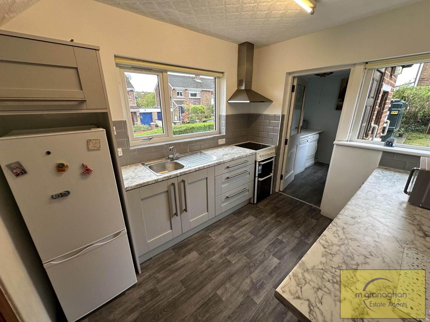 Formica work surfaces, plumbed for washing machine, single glazed