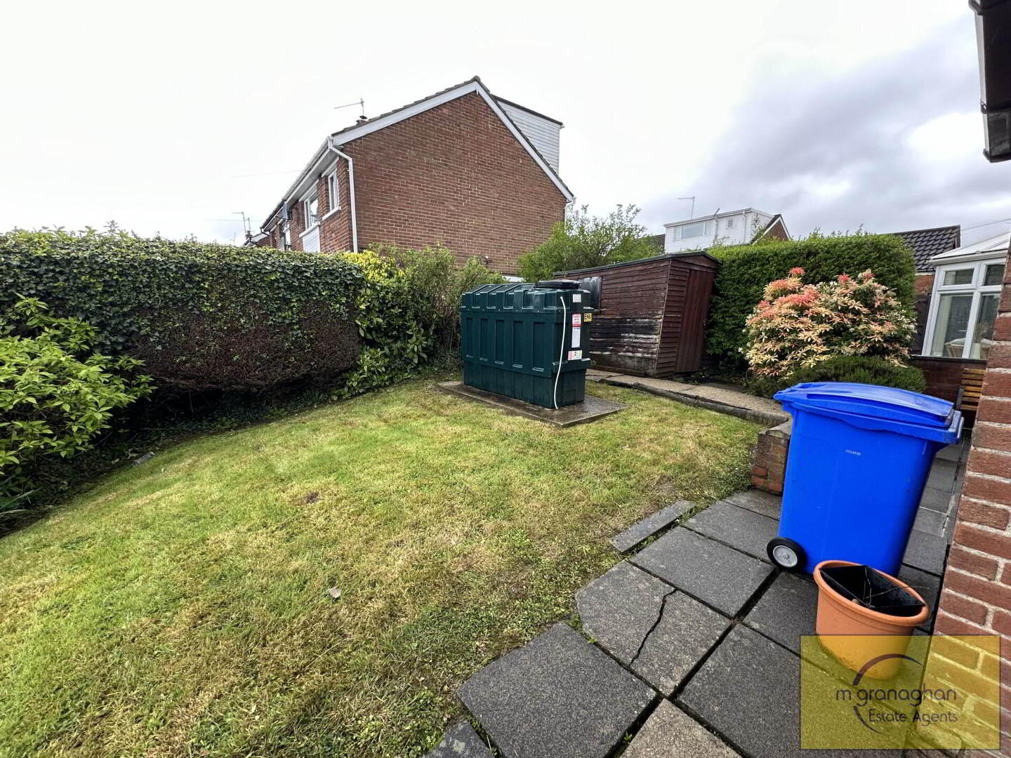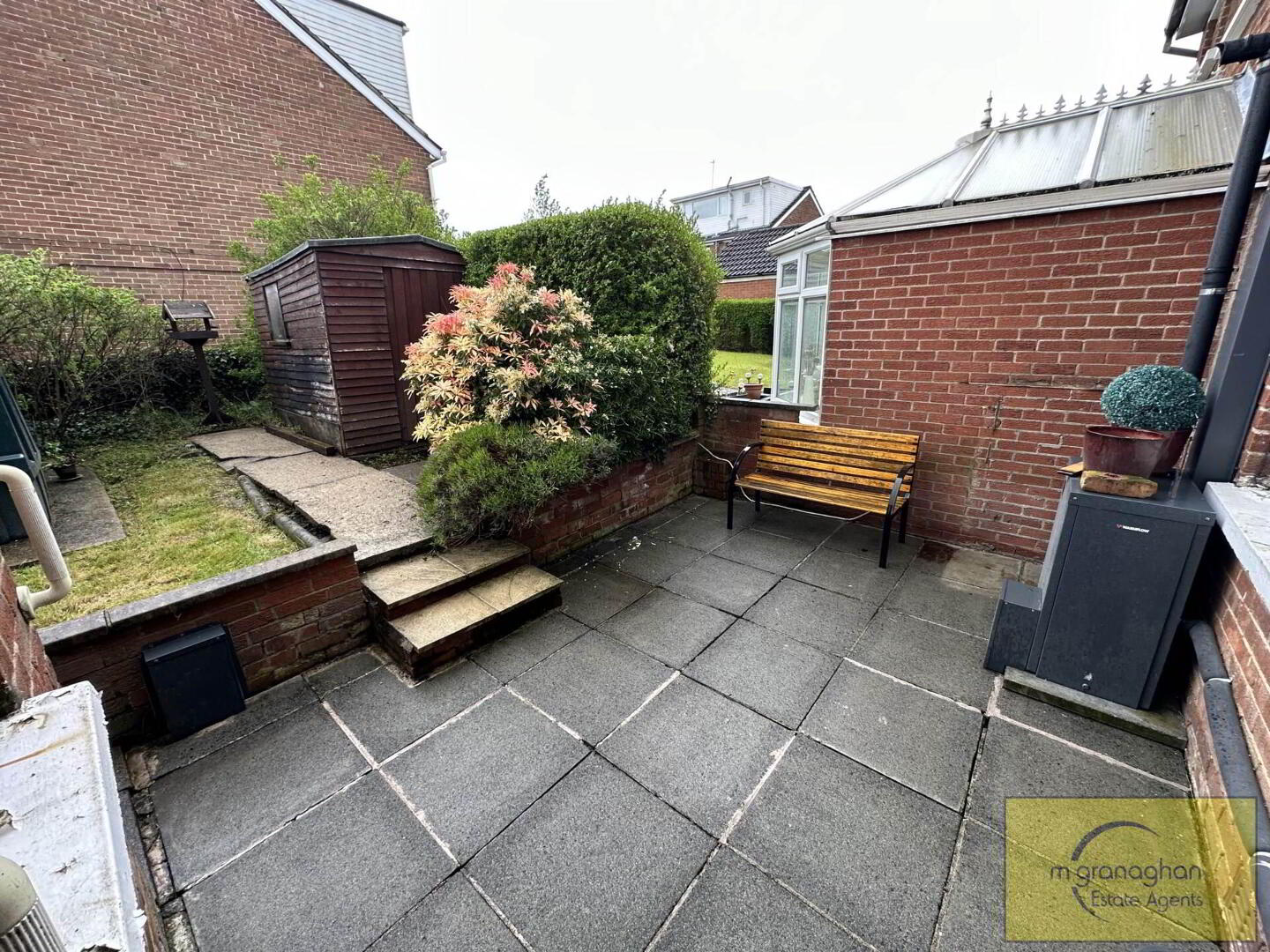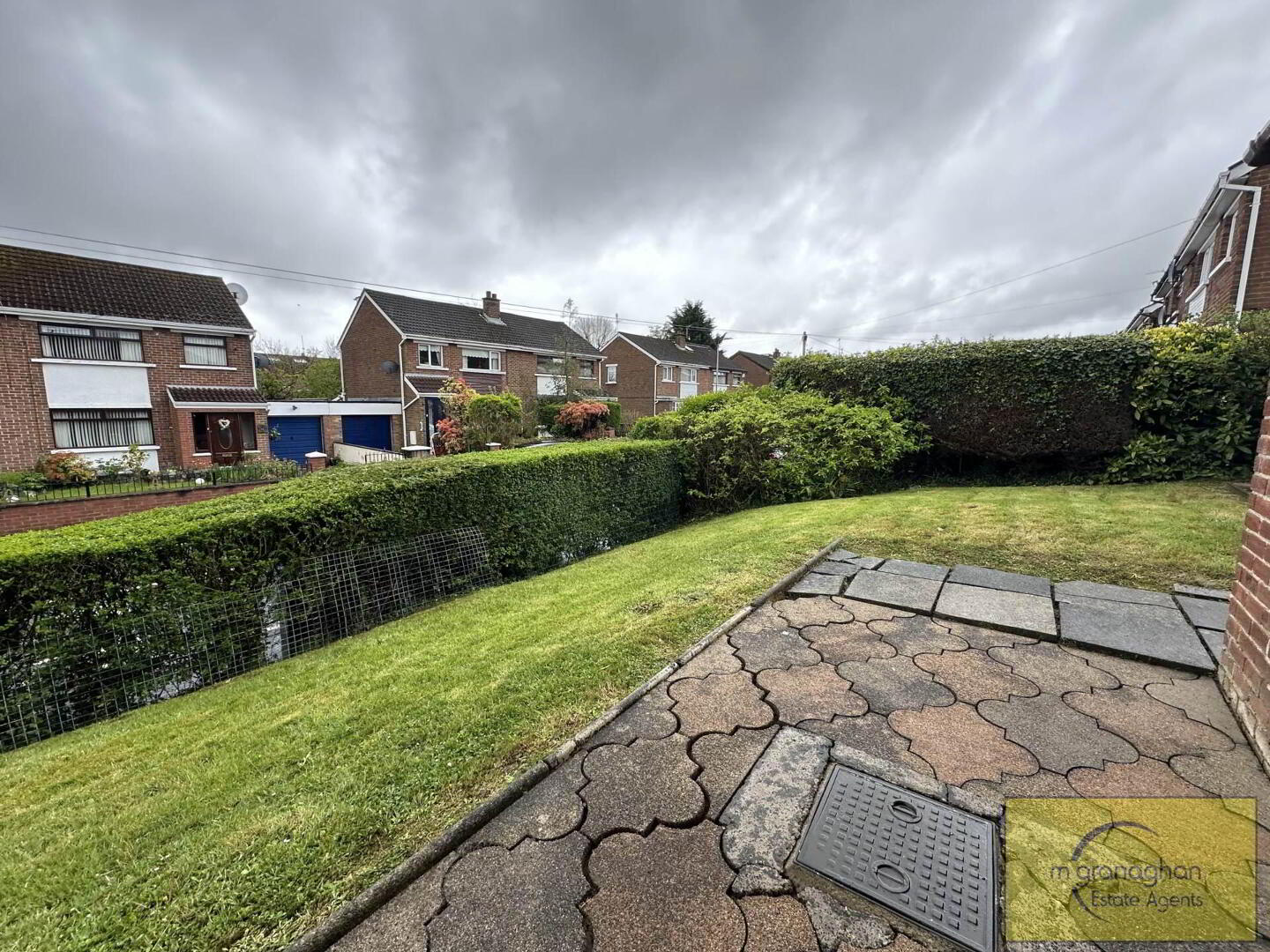 Paved area to rear, enclosed garden in lawn