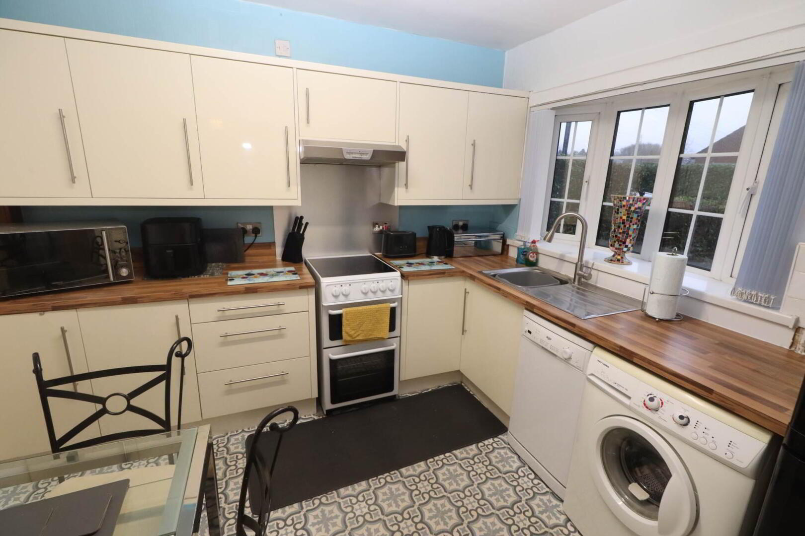 The accommodation comprises three comfortable bedrooms, a modern bathroom, and a convenient downstairs W/C. The kitchen is located at the front of the property, providing a bright and welcoming space for cooking and dining. At the rear, you will find a spacious reception room, ideal for relaxing or entertaining guests, with views over the private garden.