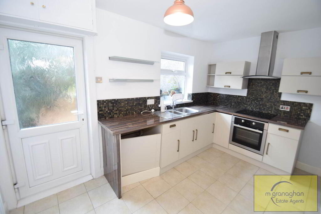 The property also benefits from oil fired central heating, double glazed windows throughout, a driveway to front from parking and a fully enclosed, split level rear garden with tiled patio area and delightful shrubs.