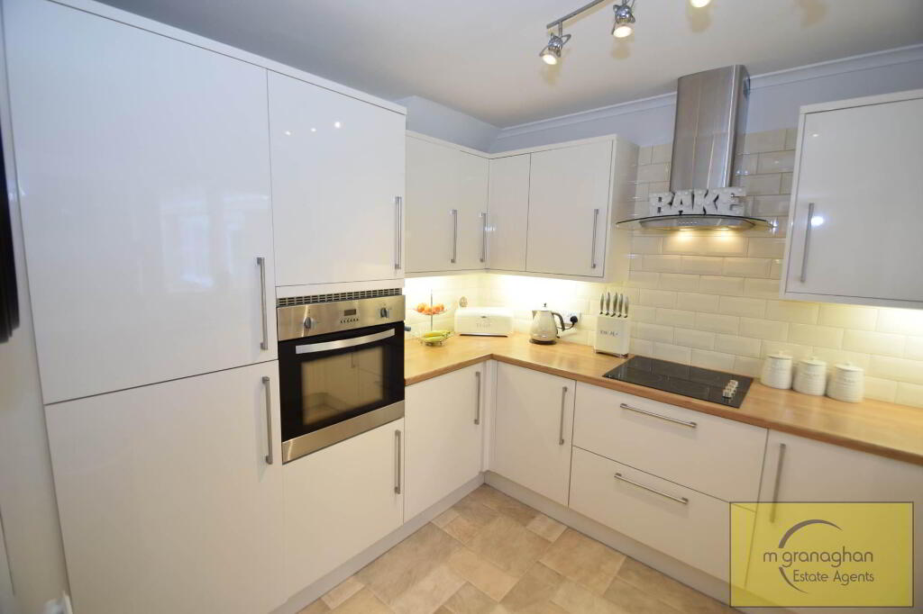 Range of high & low level units, formica work surfaces, build in fridge freezer, integrated hob & oven, stainless steel sink drainer, stainless steel sink drainer, vinyl flooring