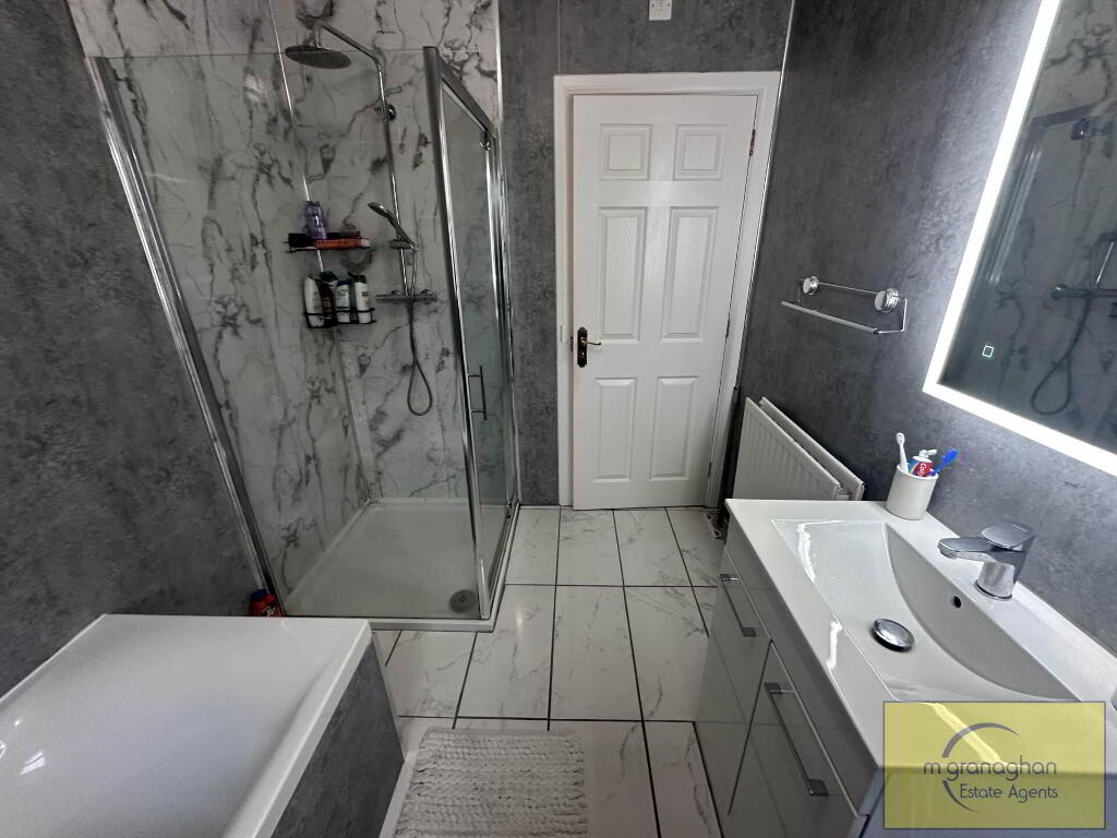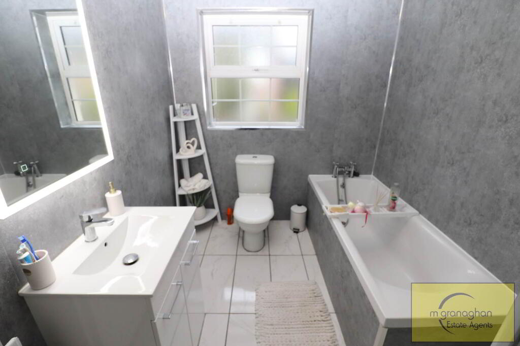 Upstairs, you will find three generously sized bedrooms, each offering ample space for storage and natural light. The bathroom is well appointed with a modern suite, including a panelled bath and separate walk in shower cubicle.