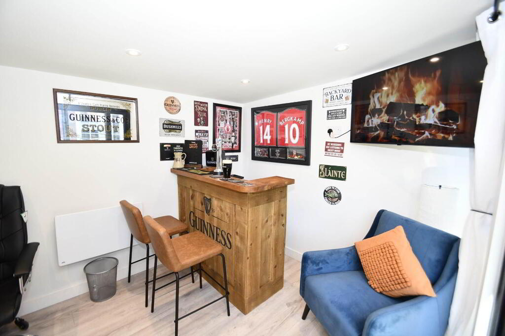 Additional features include oil-fired central heating and UPVC double glazed windows throughout, ensuring warmth and energy efficiency all year round. Externally, the property benefits from a private garden and an outside room, which is included in the sale price and offers versatile use, whether as a home office, gym, or storage space.