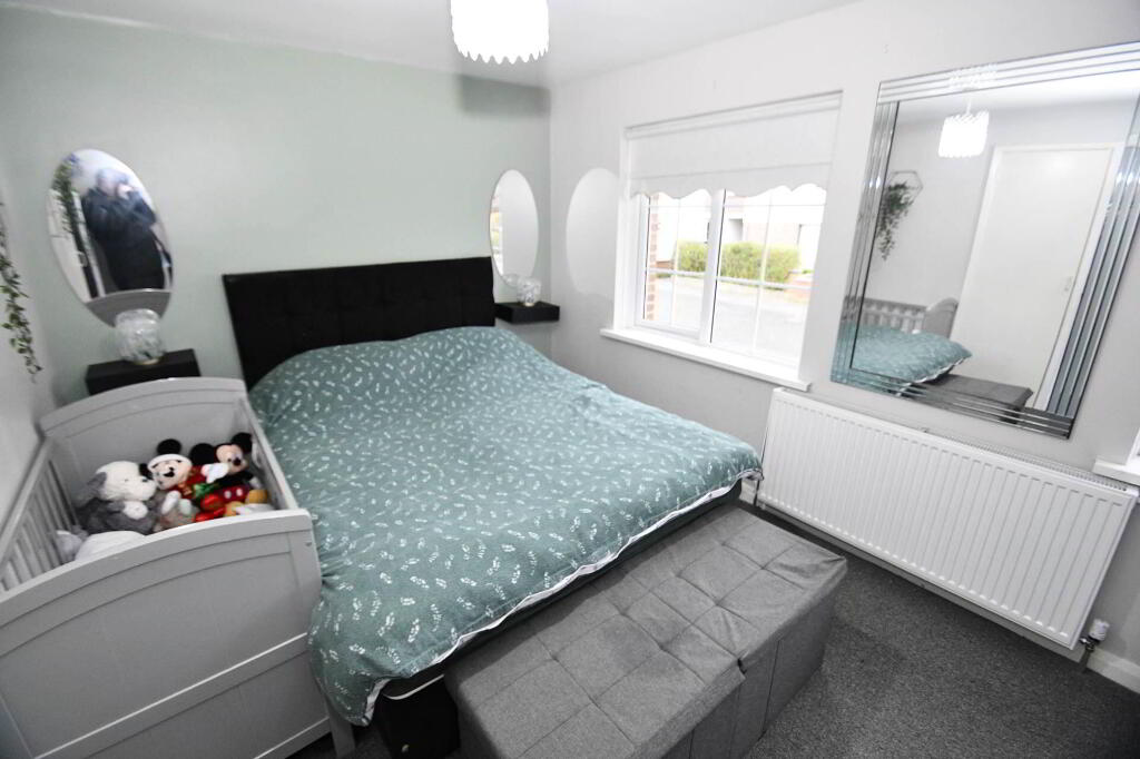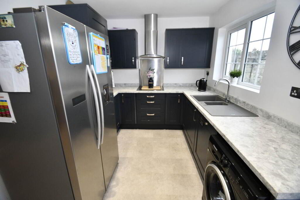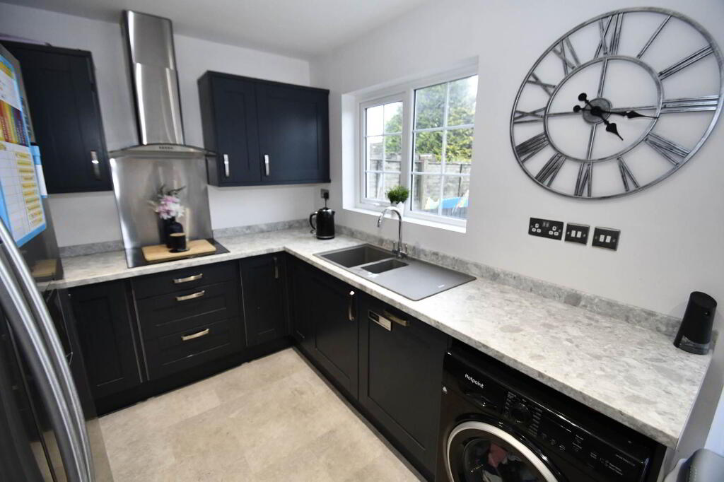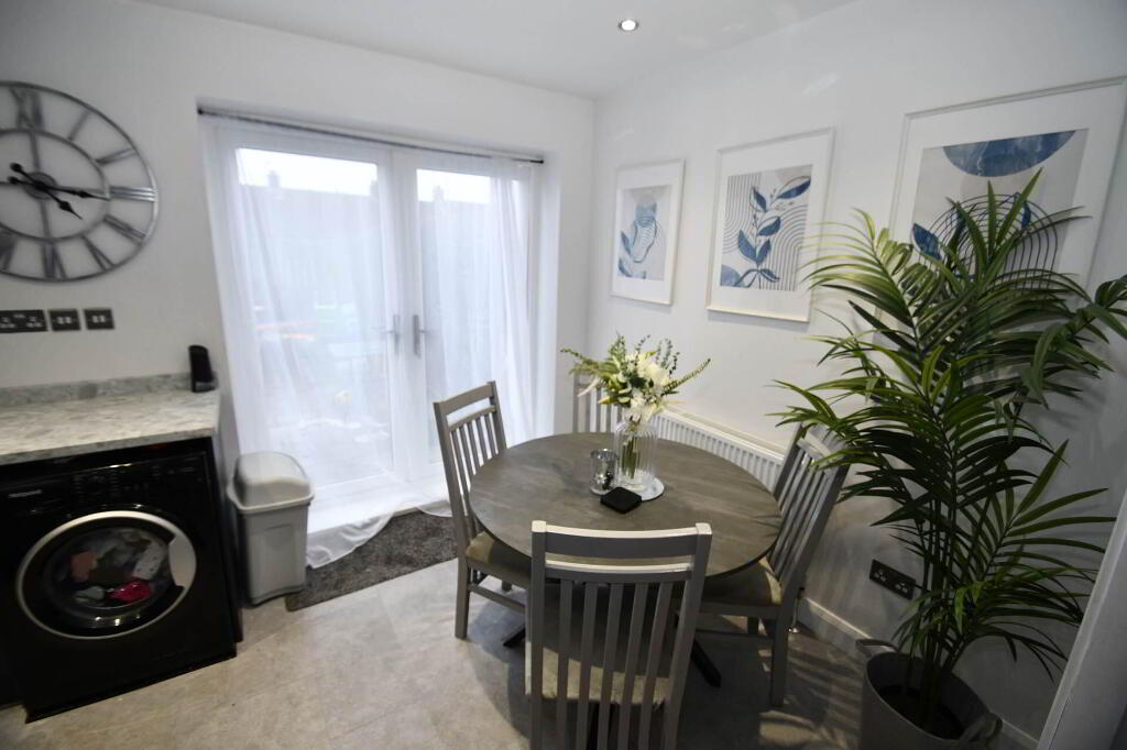A delightful mid terrace family home situated in the popular Romoan Drive, offering excellent value and ideal for growing families. This well-presented property boasts a bright, spacious and airy lounge on the ground floor, which seamlessly opens onto a modern fitted kitchen with integrated appliances. The adjoining dining area provides a perfect space for family meals and leads directly to the rear garden, featuring a low-maintenance tiled patio ideal for outdoor entertaining.