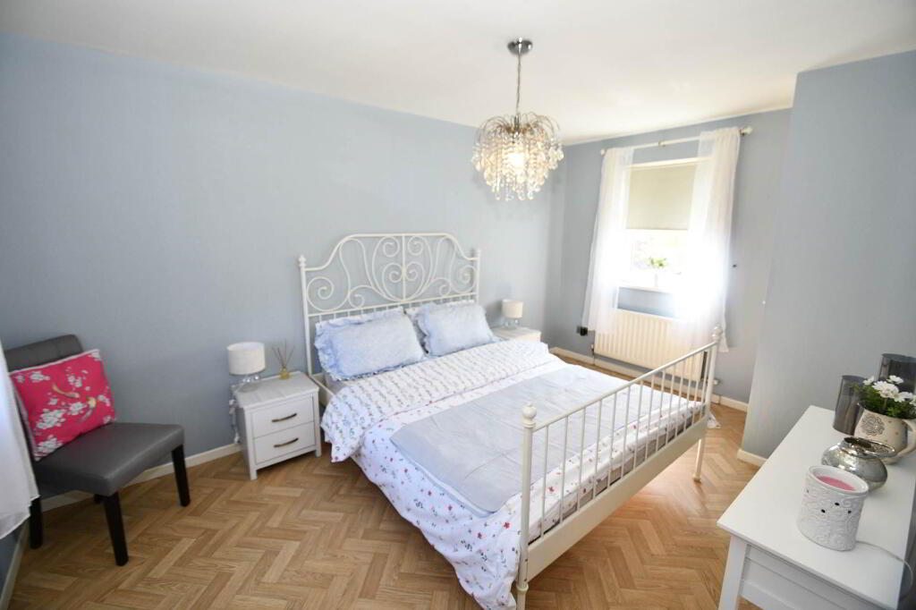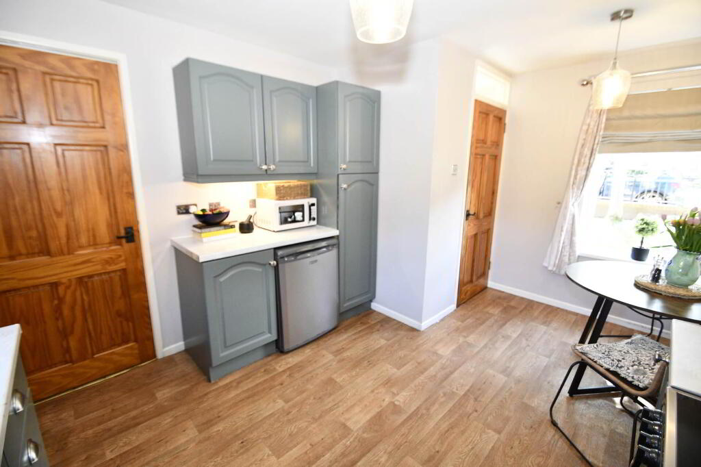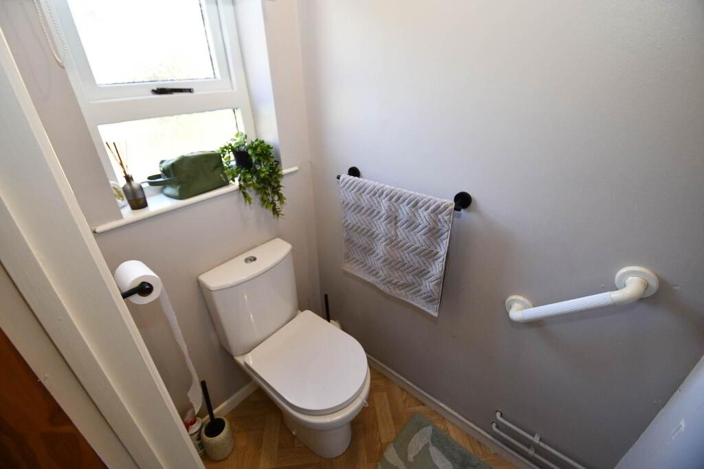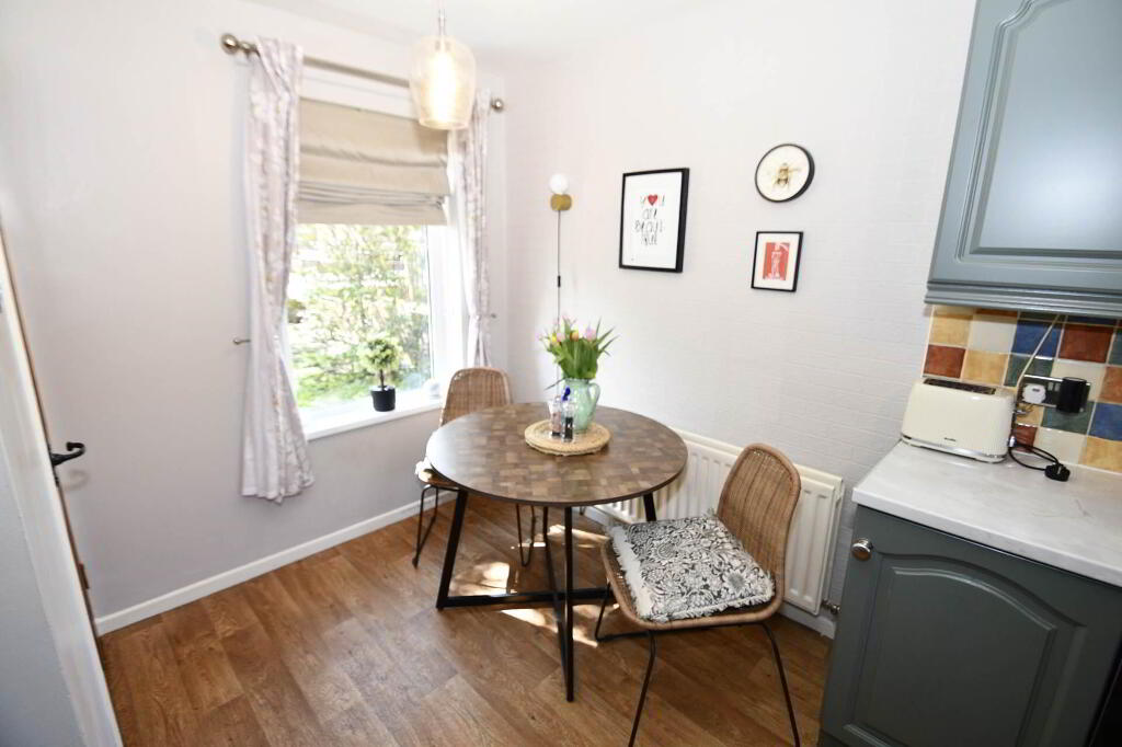 The ground floor also benefits from a fitted kitchen with a dining area, ideal for everyday meals and entertaining, alongside a convenient downstairs WC. Upstairs, you will find two well-proportioned bedrooms, both offering ample space and natural light. The white family bathroom suite is thoughtfully designed with both bath and shower facilities to suit all needs.