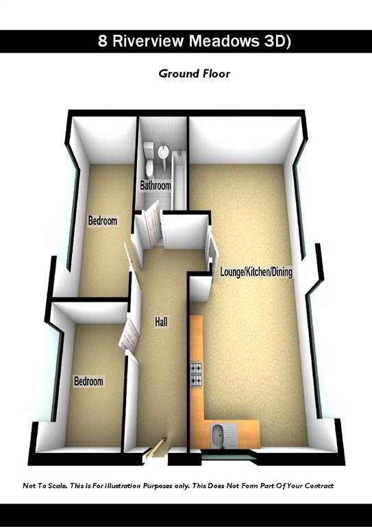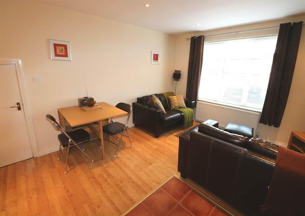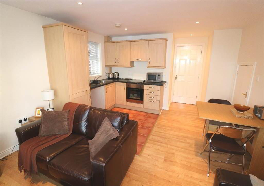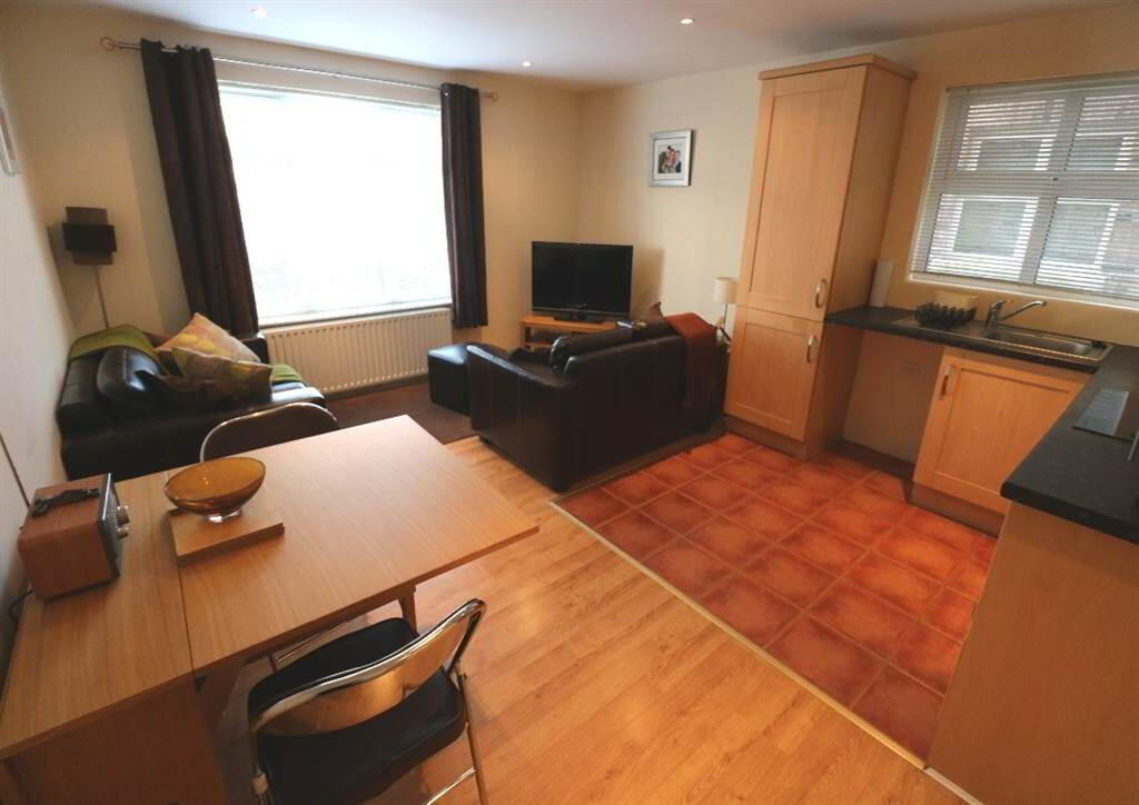 Internally the property comprises open plan living through to modern fitted kitchen with dining area, two good size bedrooms and white bathroom suite.