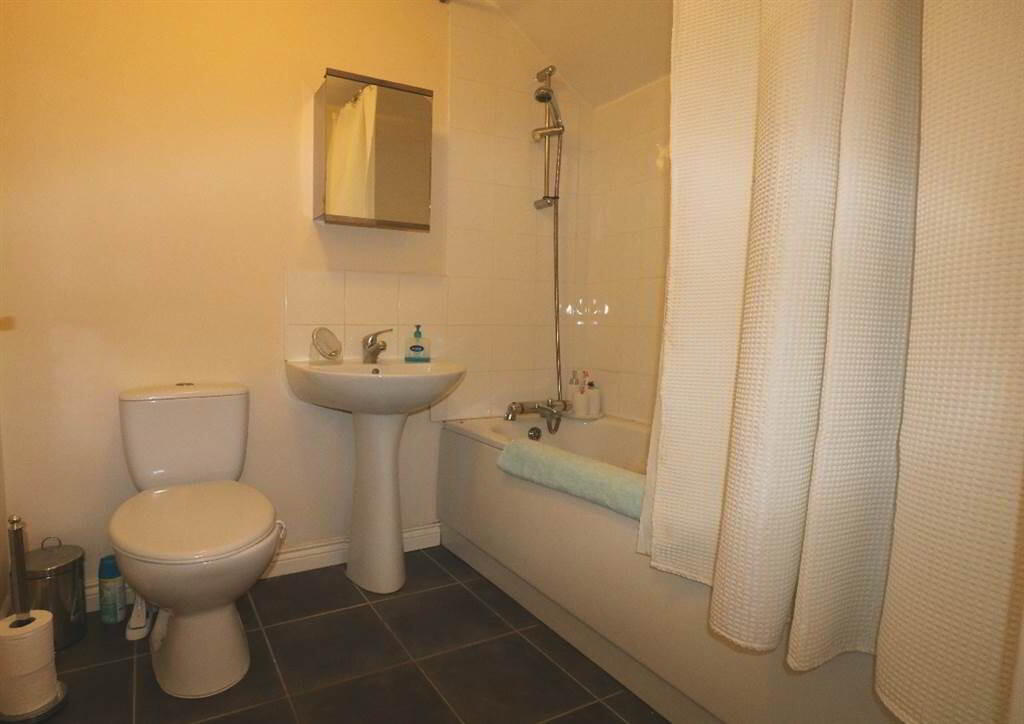 Kitchen: range of high and low level units, formica worktops, stainless steel sink drainer, plumbed for washing machine, integrated hob & oven, integrated fridge/freezer, ceramic flooring