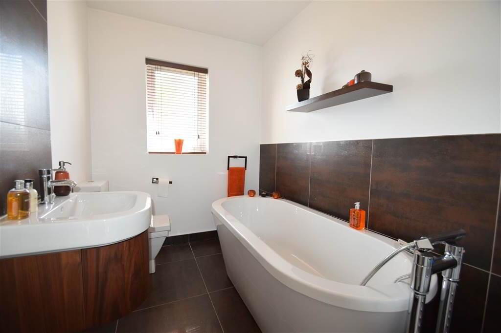 Internally the property comprises a spacious reception room, sizeable dining area and modern fitted kitchen with island on the ground floor. The ground floor also provides a downstairs W/C. The first floor boasts three well proportioned bedrooms, one with an ensuite shower room, and a white bathroom suite with a free standing bath.
