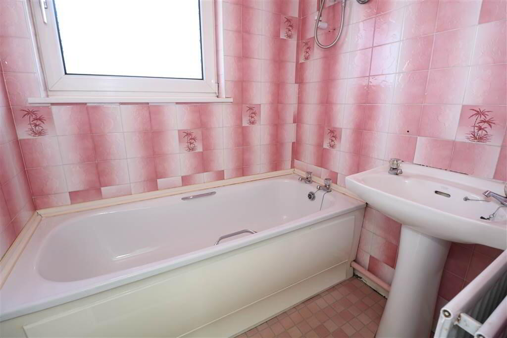Low flush W/C, fully tiled walls, lino flooring