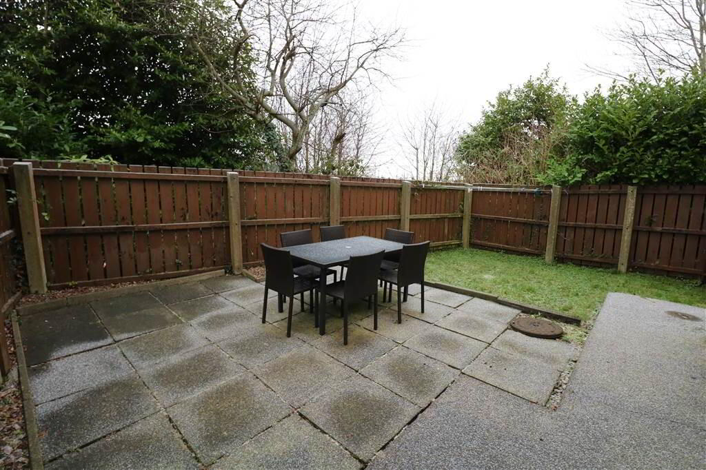 • Patio Area With Gardens In Lawn Enclosed By Fencing