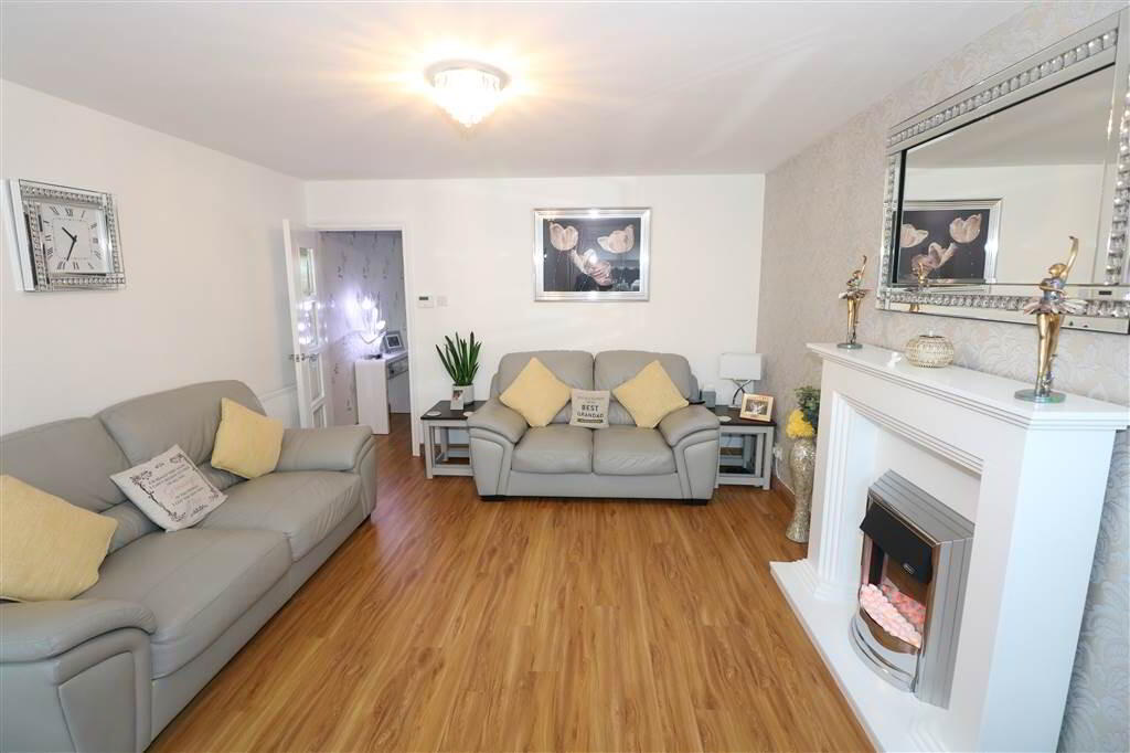 Internally the property benefits from a spacious lounge, fitted kitchen, utility room, three good size bedrooms and white family bathroom suite.