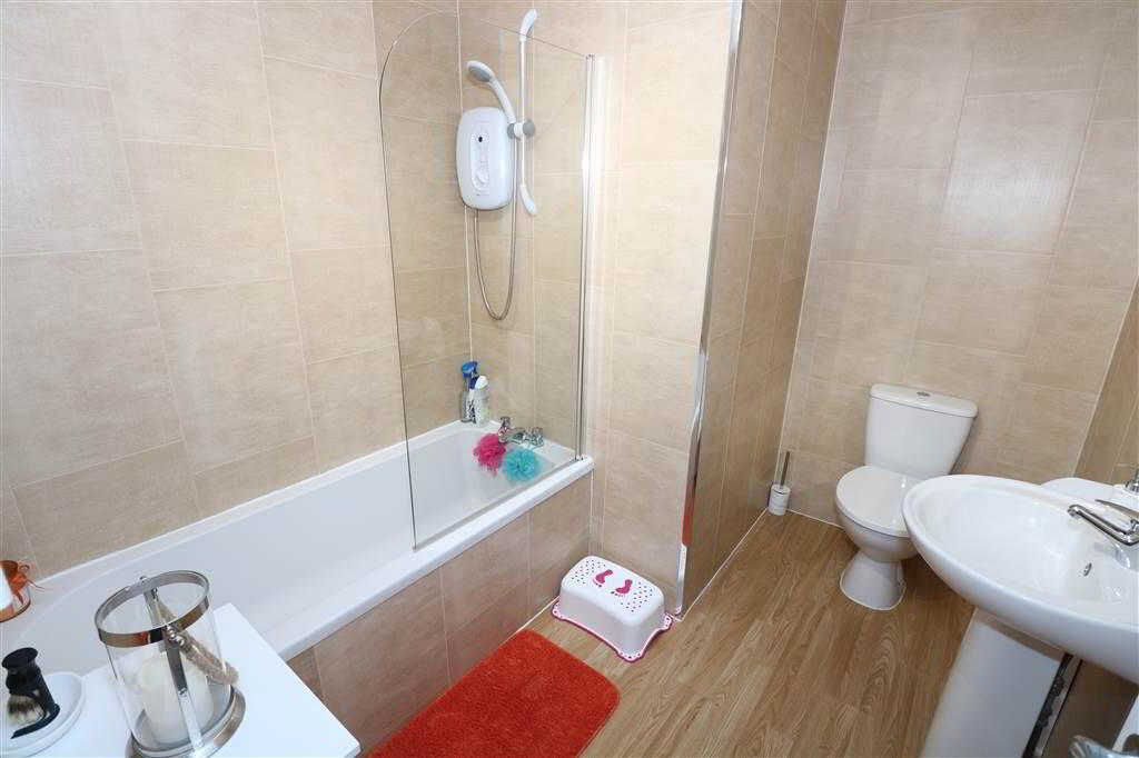 Panel bath, pedestal wash hand basin, low flush w/c, laminate flooring