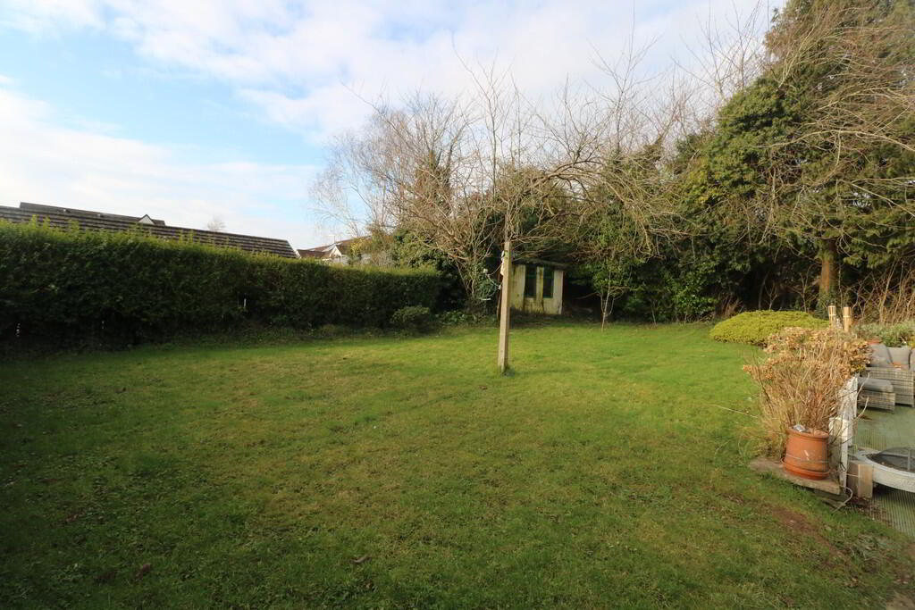Rear: Large garden in lawn enclosed by mature hedges and shrubs