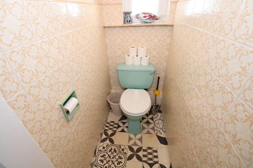 W/C: 7' 1" x 2' 8" (2.17m x 0.80m) Low flush W/C, fully tiled walls