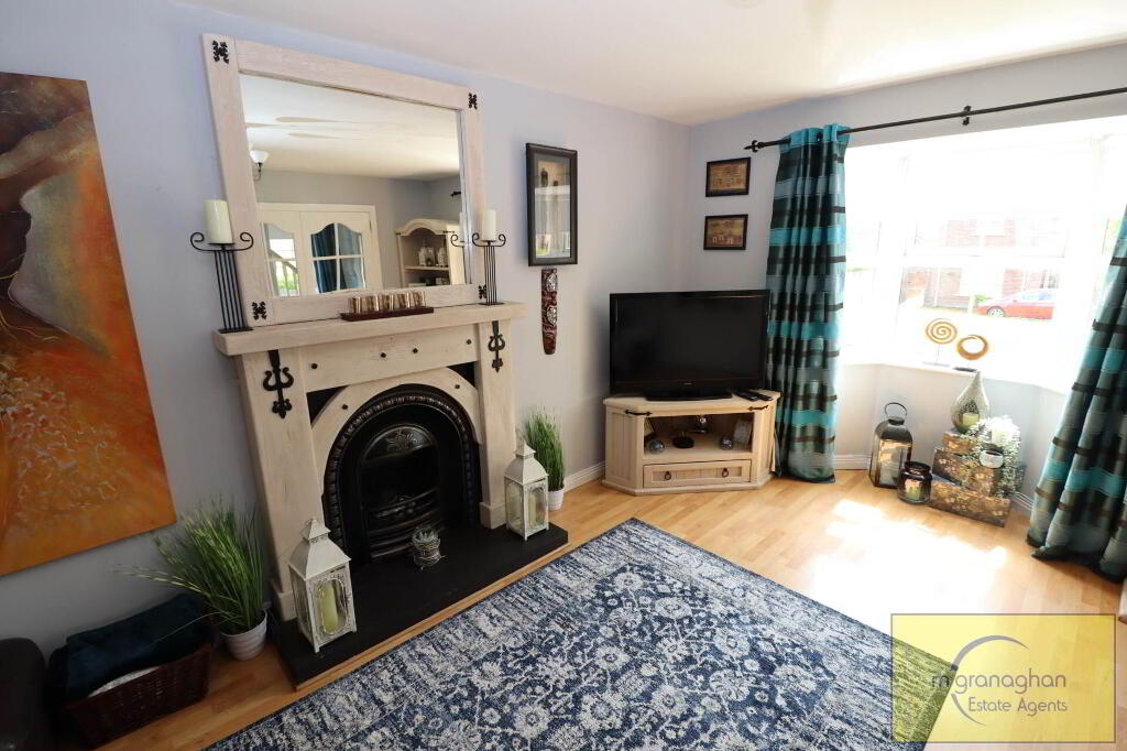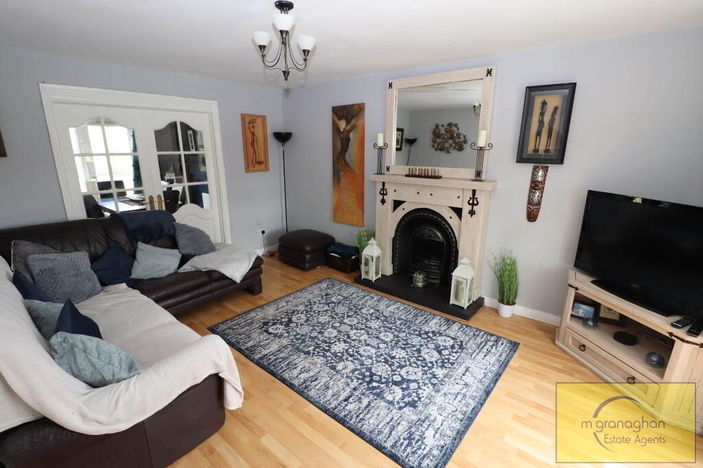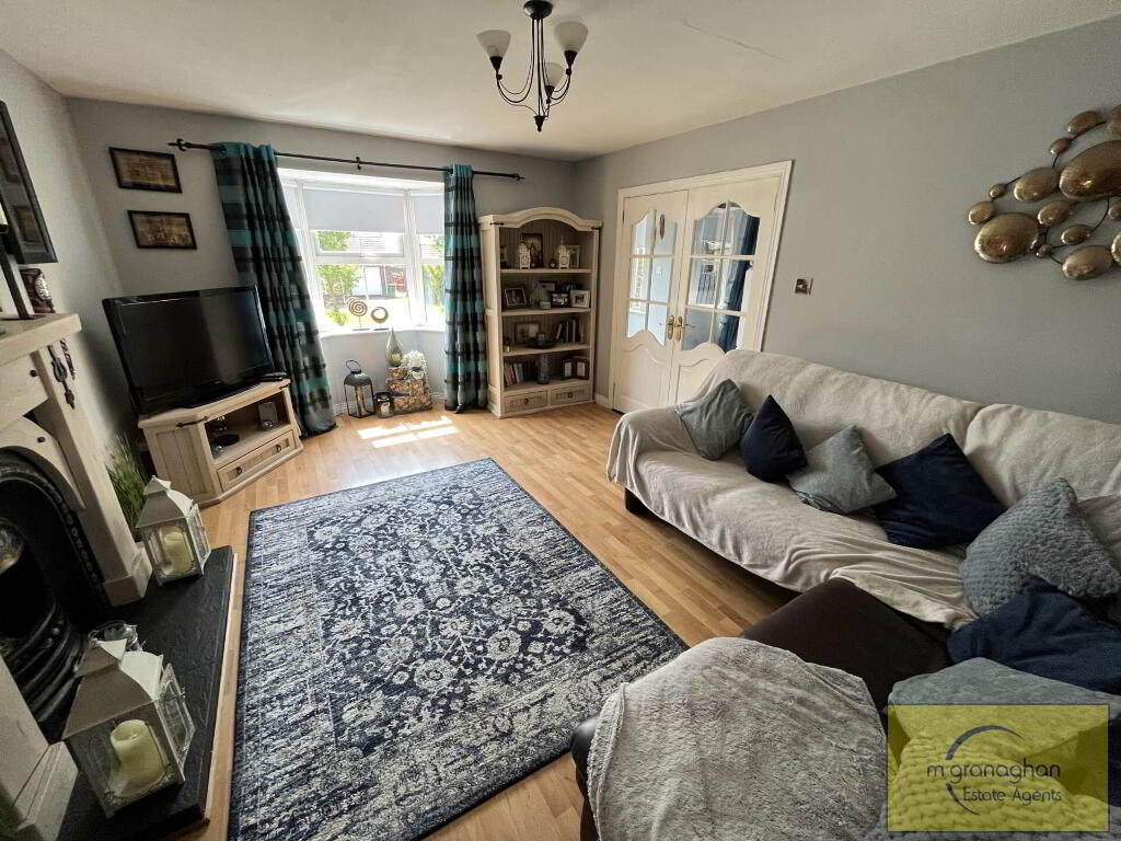 Feature fire place, bay window, double doors to kitchen, laminate floors