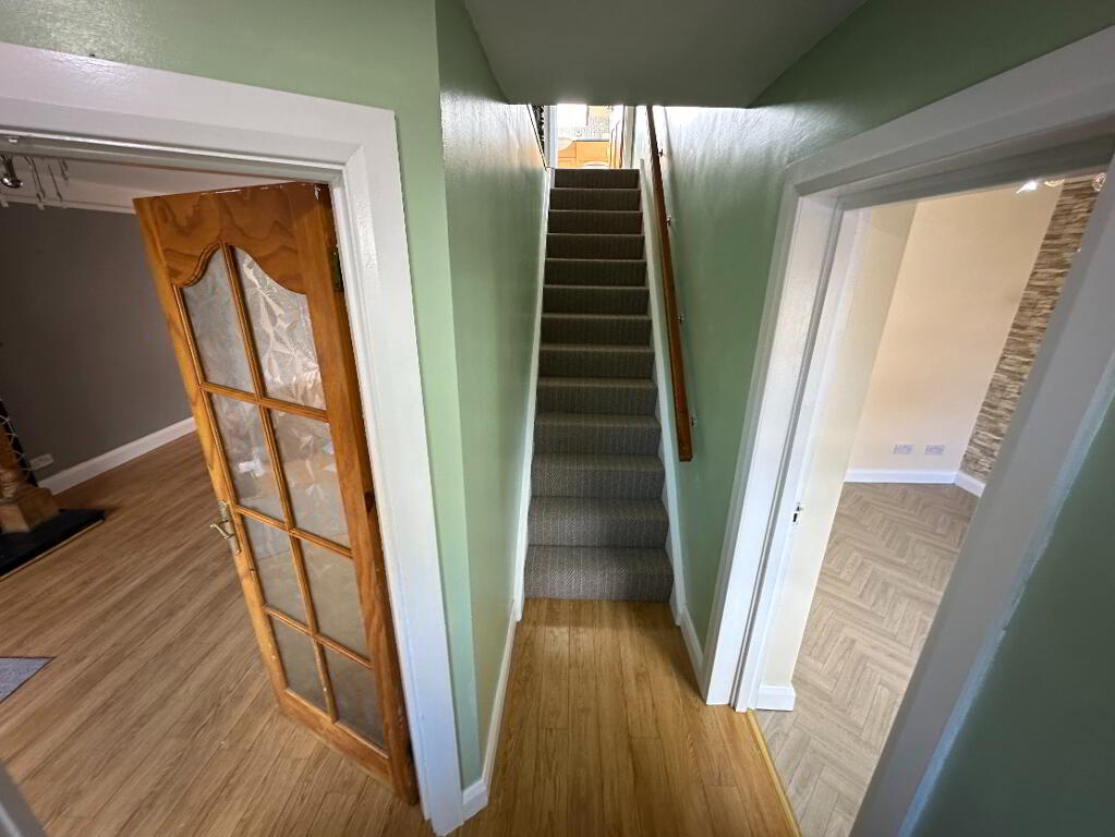 Upstairs there are four well-proportioned bedrooms, two of which benefit from built-in wardrobes providing plenty of storage. The family bathroom is a good size and features a three-piece white suite with panel bath.