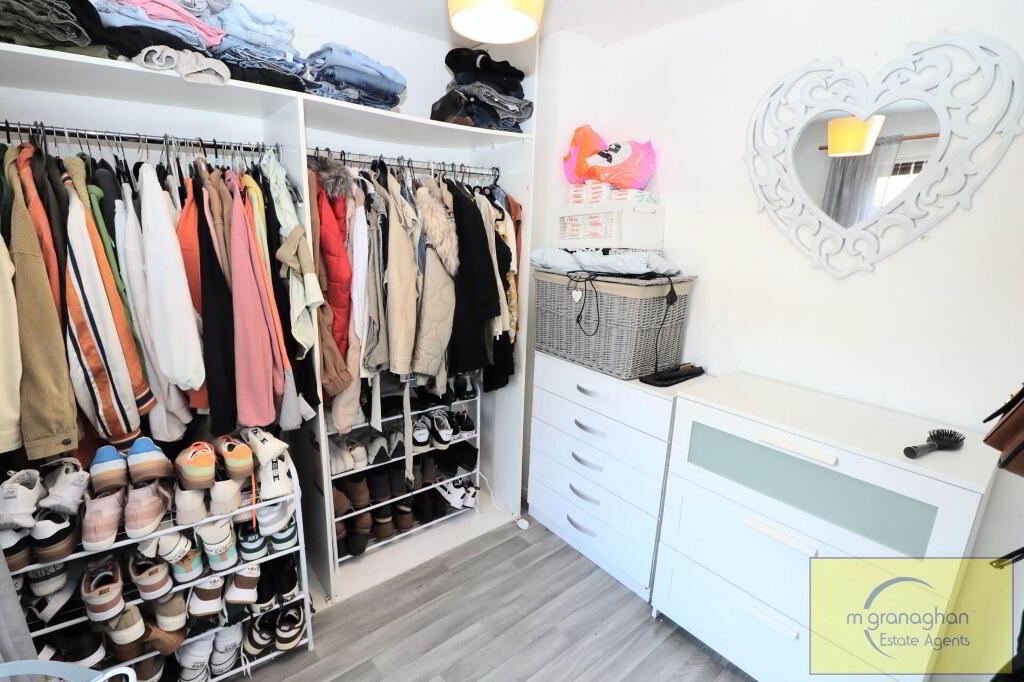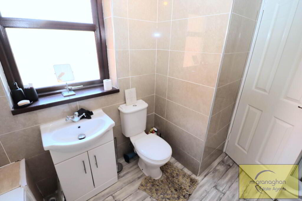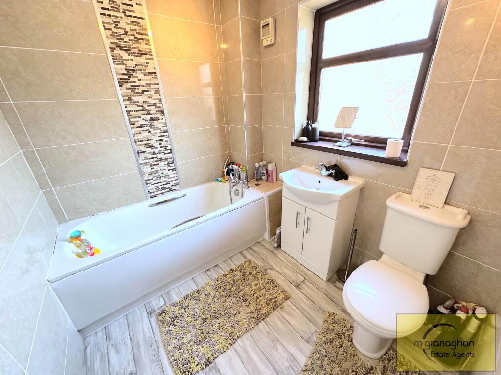 Upstairs, there are three spacious bedrooms, each with plenty of natural light. The bedrooms are perfect for a growing family, and they offer plenty of space for storage. The modern bathroom is also located on this floor and is fitted with a W/C and panel bath.