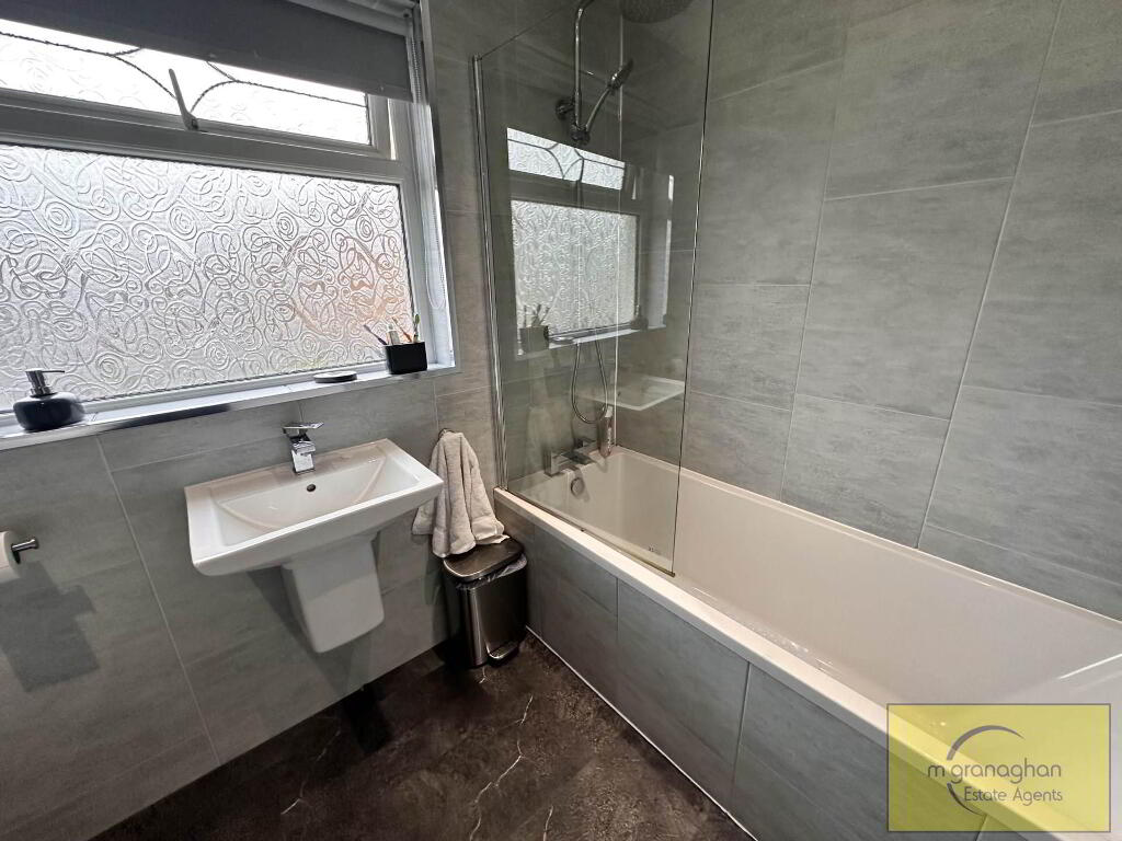 The bathroom is also located on the first floor and is fitted with a modern suite which includes a bath with over bath shower, wash basin and toilet. The bathroom is finished to a high standard and is the perfect space for relaxing and unwinding after a long day.