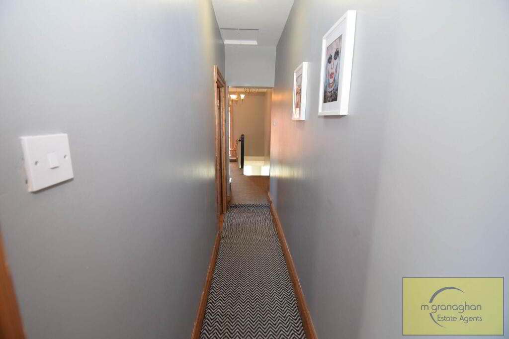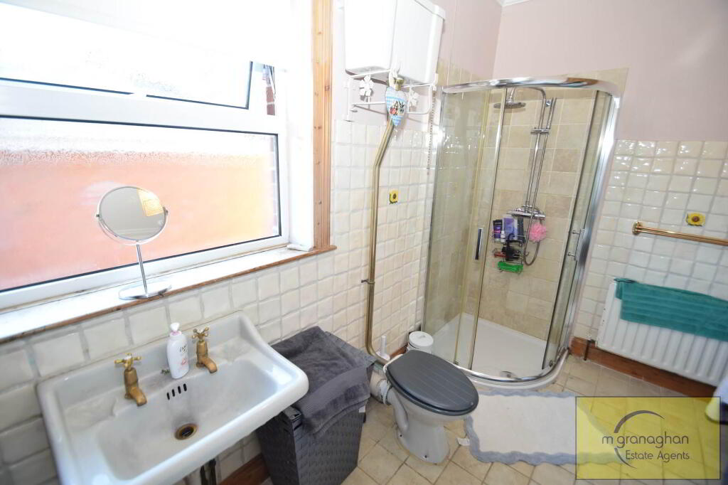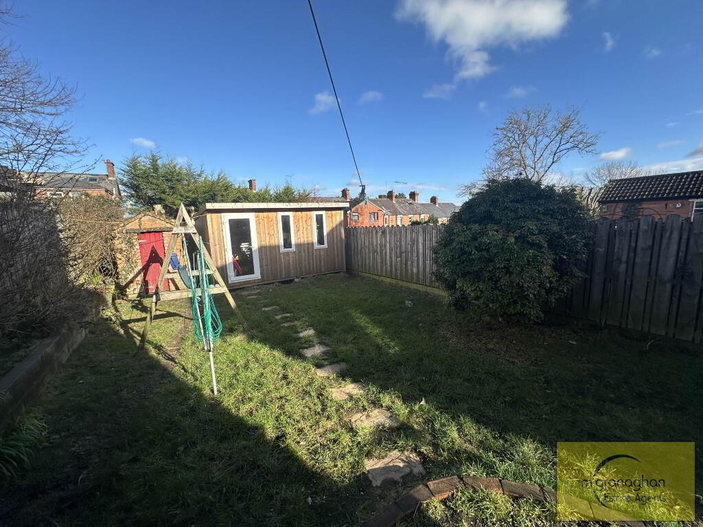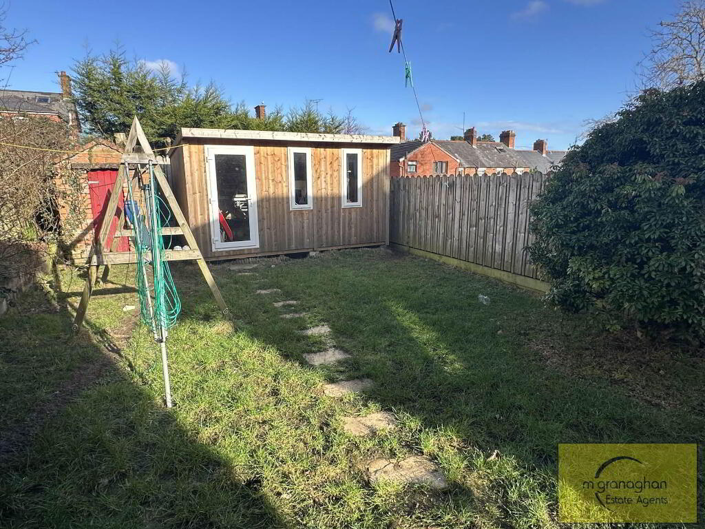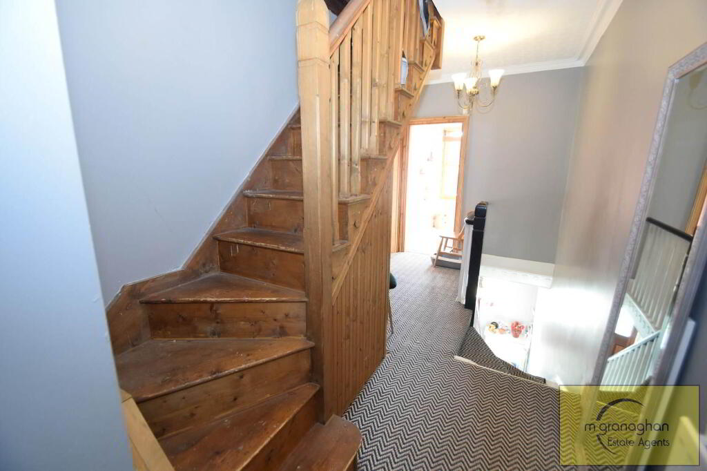 The property also benefits from a floored attic space for additional storage, gas fired central heating, double glazed windows throughout, driveway for parking to front, which is secured by iron wrought gates and a large, fully enclosed, easily maintained lawn to rear with garden shed and cabin with electrics and lights.